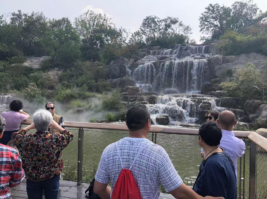 公园工作人员介绍,今天双子山一早就迎来了很多游客。记者赶到公园时,正是登山高峰,放眼望去,山脚的瀑布跟前、登山通道、山顶都是人,登山入口处还需要排队几分钟才能上山。
