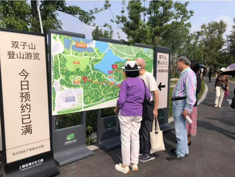 “佘山太远了,双子山虽然是假山,好歹也是山。”家住浦东的王阿姨告诉记者,昨天她预约双子山的时候,顺便问老公要不要一起预约,“他一开始说不要,后来老战友打来电话约他一起去爬双子山,就差一会的时间,系统里已经只能预约到了傍晚5点最后一档了,我就知道今天双子山人多,果不其然。”