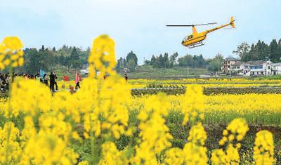 4月以来,四川省崇州市的30万亩油菜花竞相绽放,从空中俯瞰,将会带来不一样的感受。为此,当地开通了“低空航线”,游客在半小时的低空飞行中,不仅可以俯瞰一望无际的油菜花海,还能欣赏附近错落有致的民居庭院。此外,当地还推出花海跳伞项目,将极限运动融入赏花,带给游客别样的体验。