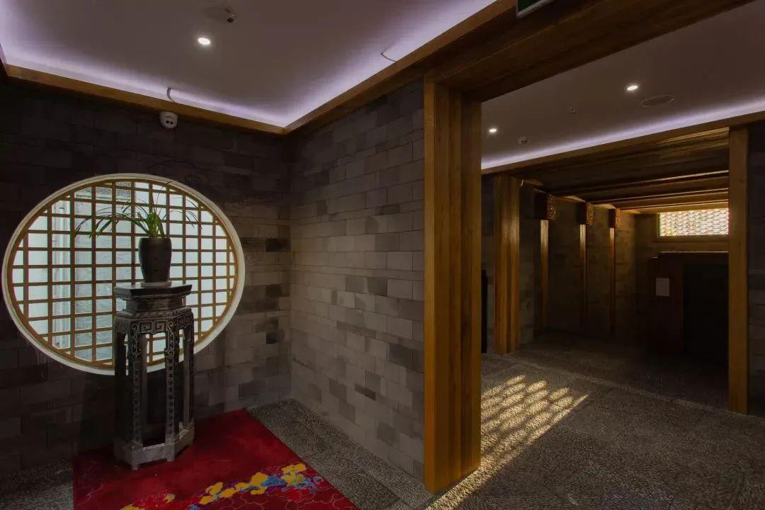 酒店整体建筑以石头、木材、砖为主要材料,黑、白、灰、木四色,将空间的质朴特性和典型的东方意蕴勾勒无遗。步入复式大堂空间,一番简奢气韵扑面而来,借助原建筑的高挑空间,大堂巧妙融进“天井”元素,将蓝天白云拥揽入怀,让云影天光成为动态艺术装置。