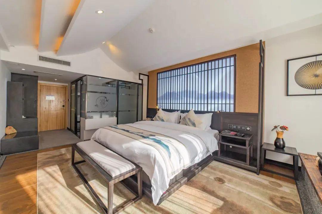 酒店以五星级标准打造了43间客房,分为“云”海景房与“燕”园景房,“云”系列将180°海景纳入落地窗框,“燕”系列独享白族园林框景美学。每间均配备智能设施,拉开通往海天的落地窗,诗意空间里光影游弋,洱海成了枕畔私藏的画卷。