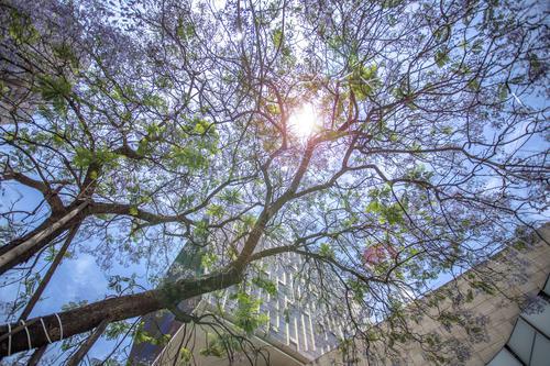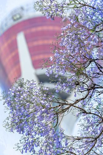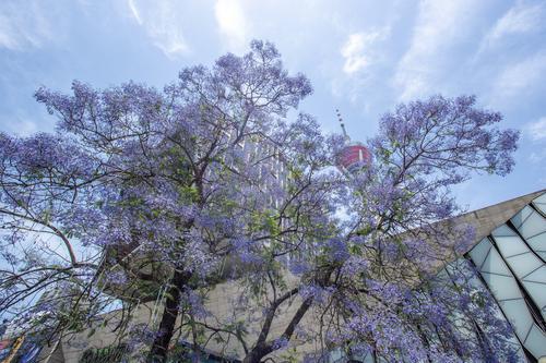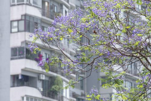 据悉,蓝花楹原产于南美洲,在每年5月至6月进入盛花期。因其花色独特、花姿优雅,深受成都市民喜爱,已成为城市街头一道亮丽风景线。