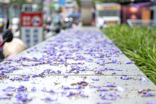 在成华区天府熊猫塔旁,标志性的蓝花楹已缀满枝头,率先开启了这场紫色浪漫。微风拂过,蓝紫色的花瓣簌簌飘落,为地面铺上一层梦幻的“花毯”,吸引众多市民驻足欣赏、拍照留念。