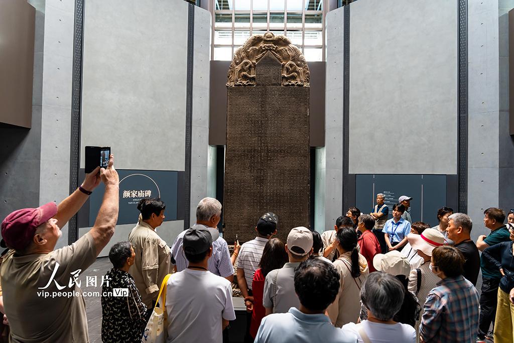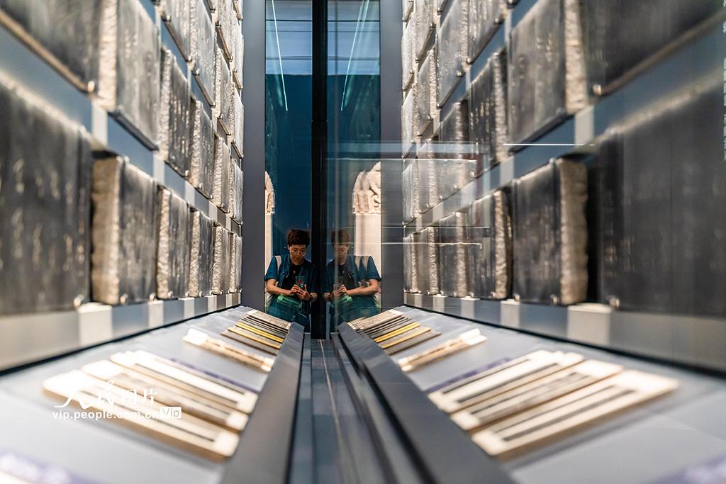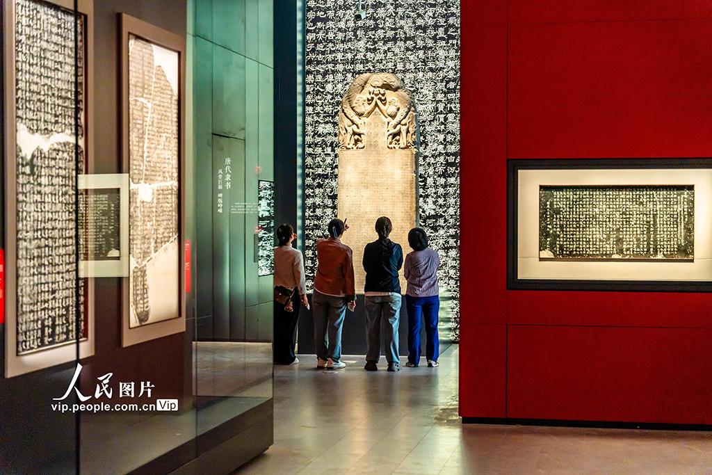 近日,改扩建后的西安碑林博物馆以崭新面貌正式向公众开放。此次改扩建后,博物馆展陈面积由原来的8000平方米增至23000平方米,新增北区、东区、西区三大展馆,展出文物从800余件增至2000余件,包括首次亮相的颜真卿、柳公权等名家碑刻珍品。新馆增设“星耀长安”“昭陵六骏”等五大专题展览,并引入数字化互动体验项目,全面提升观展体验。作为陕西省最早成立的博物馆,西安碑林焕新升级后将继续发挥“东方文化宝库”的重要作用。张成摄(人民图片网)