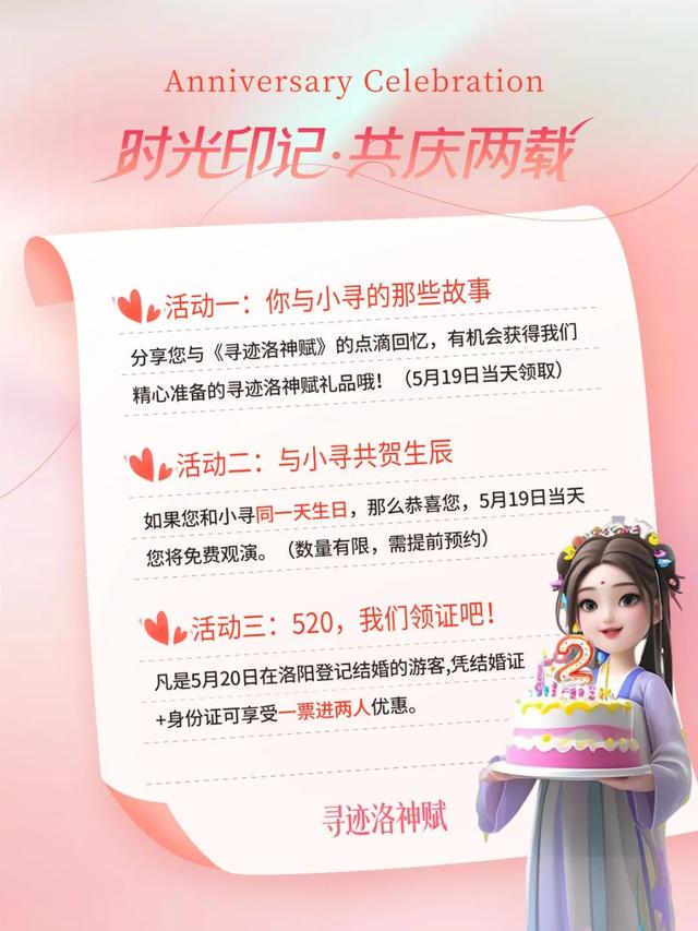 免票政策:全国游客朋友5月19日生日的,凭身份证当天可免费观演。5月19日所有入场观演游客均可免费领取“寻迹文创盲盒礼品”一份。