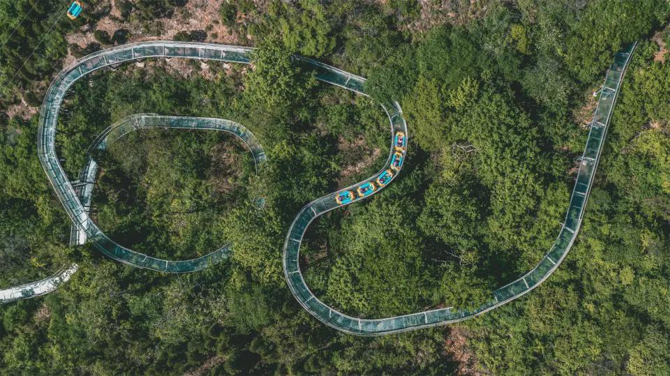 2000米+空中玻璃漂流,坐上漂流艇,欣赏着山中美景,在蜿蜒峡谷中5199°旋转漂移,感受速度与激情,尖叫与清凉并存。