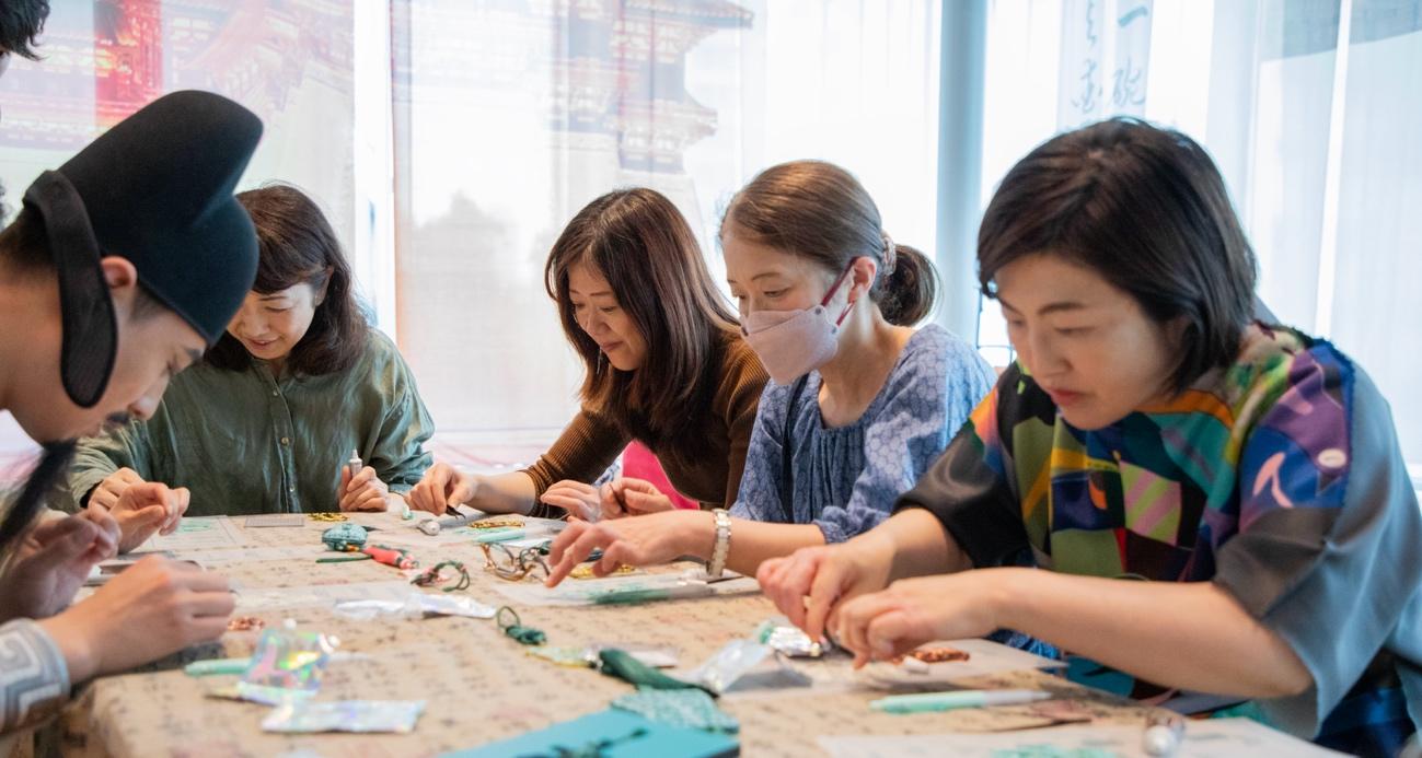 客人体验制作绿松石铜牌。中国驻大阪旅游办事处供图