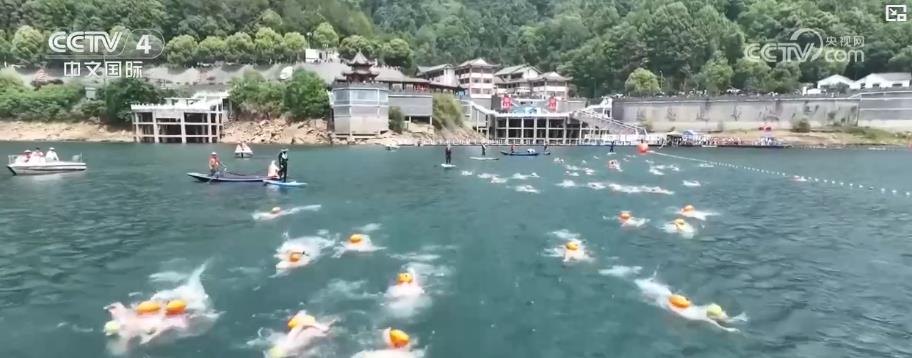 安徽太湖县国家4A级景区花亭湖举行国际公开水域游泳赛。花亭湖拥有72平方公里的湖面面积,风光秀美。今年的赛事吸引了来自中、美、俄等9个国家的1500多名选手参加。为期两天的赛事吸引来众多游客。选手们表示,在这样地理环境下比赛是一种享受。