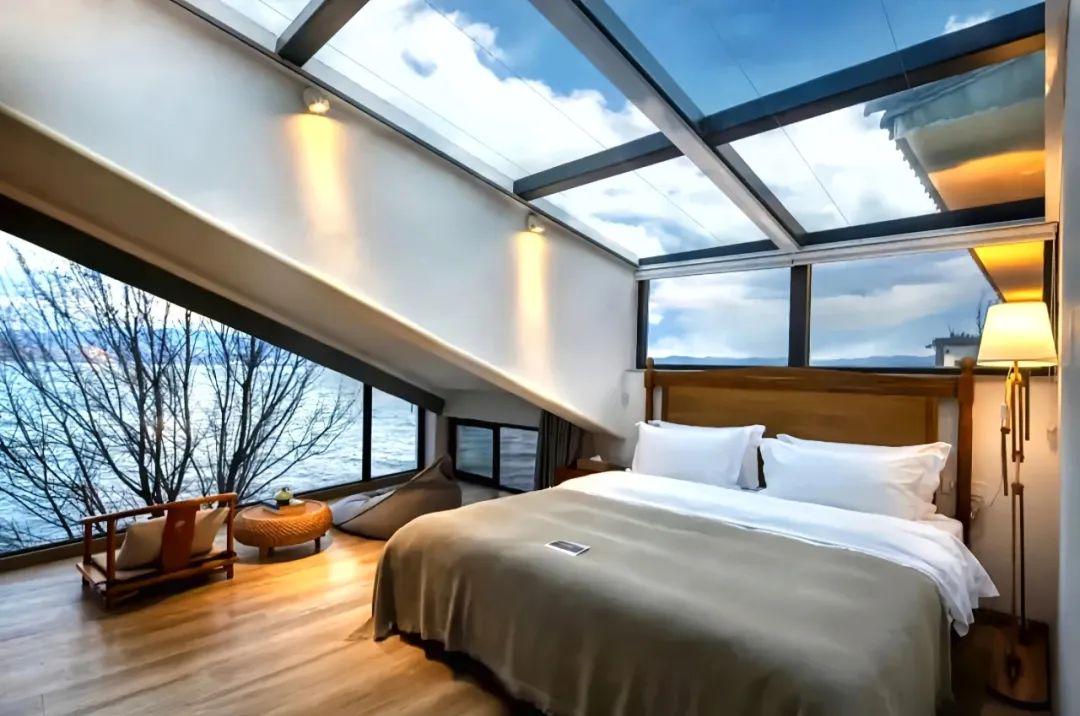 虽然只有14间客房,但传家合院的每间客房都各具特色:LOFT全画幅海景房将洱海的波光云影定格为画,露台侧海景大床房让客人枕星河入眠,庭院·日出双床房则以落地窗揽尽晨光。