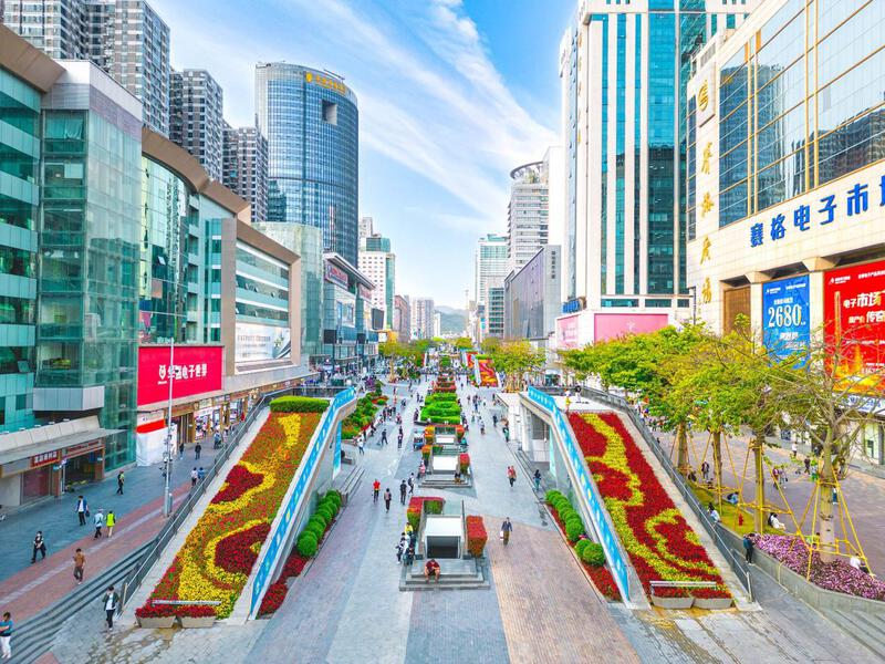 华强北步行街:中国电子第一街华强北,从1米柜台,到如今全球电子市场的“风向标”和“晴雨表”,不足1公里长的街区,走出了50多个亿万富翁,也孕育了腾讯、神舟电脑、金蝶等一批知名企业。