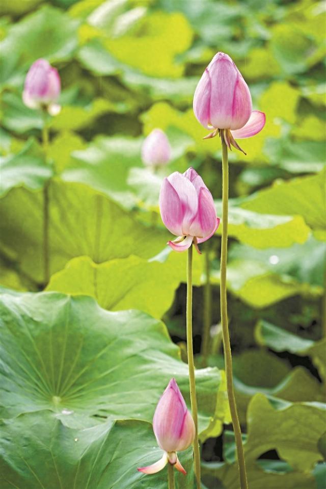 连日来,深圳各大公园、景区的荷花悄然绽放,引来游人如织。步入洪湖公园,百亩荷塘映入眼帘;荷叶层层叠叠随风摇曳,荷花星星点点伫立叶间。目前荷花虽未进入盛花期,但赏荷热潮已悄然掀起,不少市民游客争相“抢鲜”打卡。