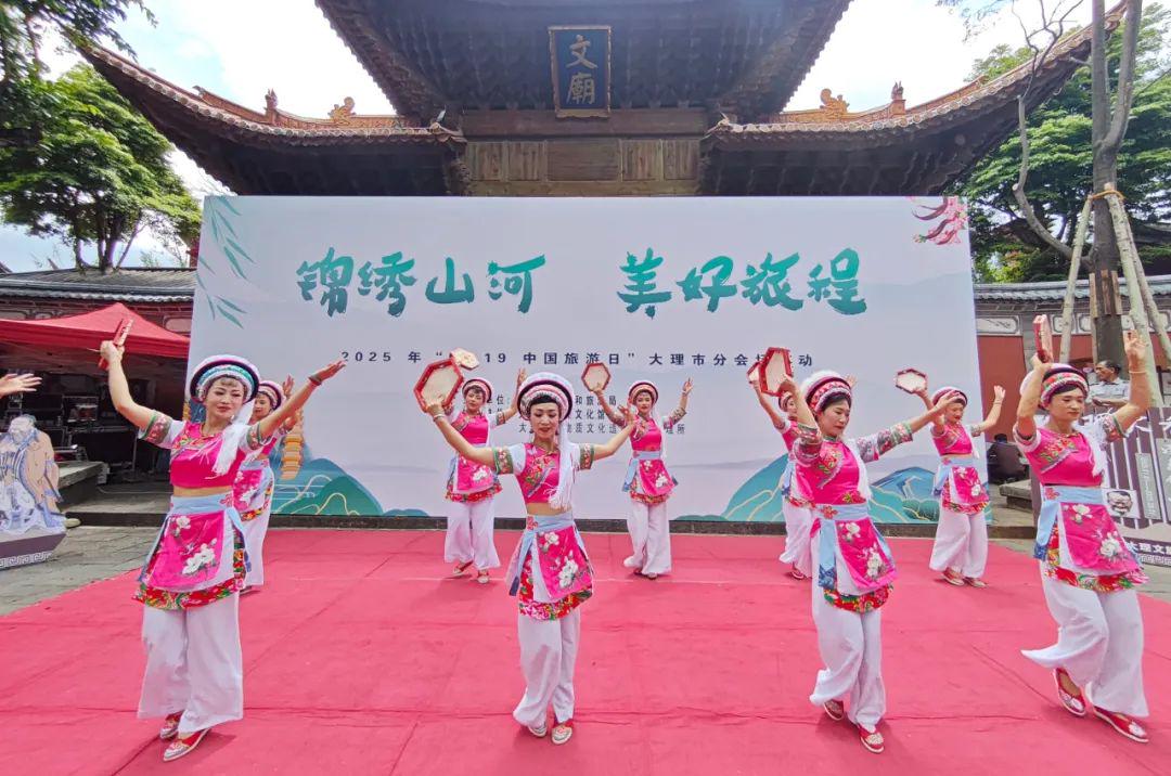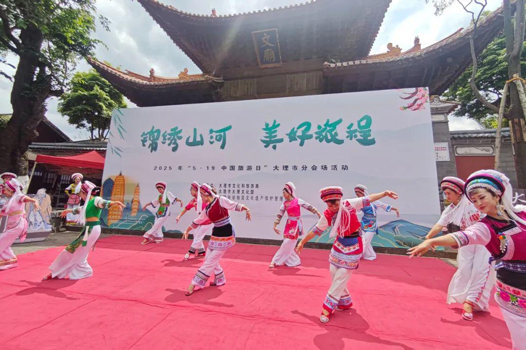 5月19日,2025年“中国旅游日”大理市分会场活动在大理古城文庙门前广场热闹上演。本次活动以“锦绣山河,美好旅程”为主题,通过民族文艺表演、文旅集市、非遗体验等丰富形式,为市民游客献上了一场充满大理风情的文旅盛宴。