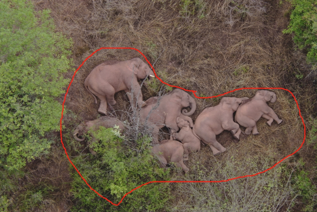 除了草鸮,论“搞事情”,作为云南“顶流”动物的亚洲象也不遑多让,它们即便是睡觉,也要摆出爱你的模样。不信看下图,有图有真相。