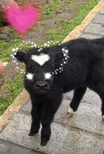 当然,比起上面的动物,下面这头来自迪庆的小牛,额头上的心形过于显眼了。网友忍不住为它担心:这家伙怕不会从小就是个恋爱脑吧!