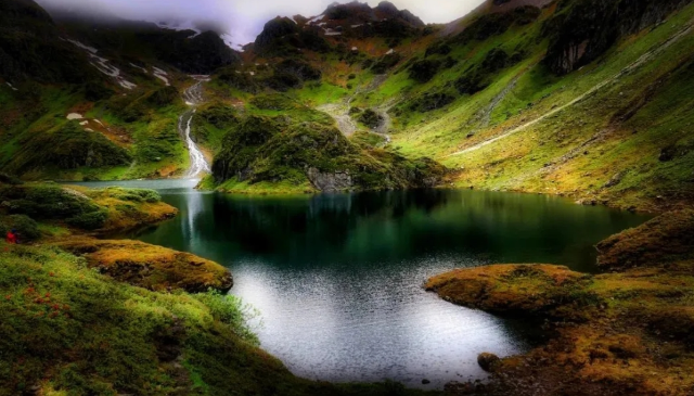 “心湖”藏在大山深处,人迹罕至,正因如此,也为其披上了一层神秘的面纱。