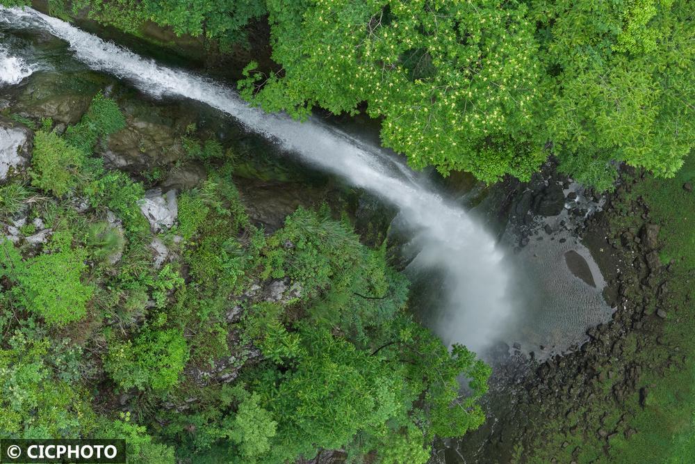 ↑2025年5月18日拍摄的湖北恩施大峡谷云龙瀑布。(无人机照片)CICPHOTO/杜维 摄