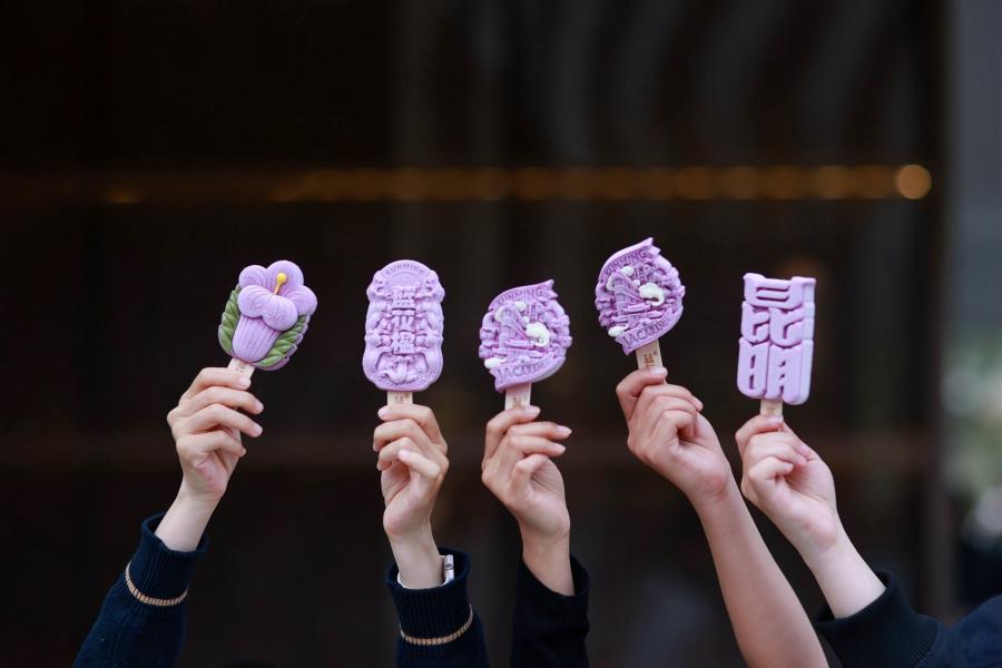 蓝花楹文创冰淇淋(5月1日摄)。新华网发(五华区人民政府新闻办供图)