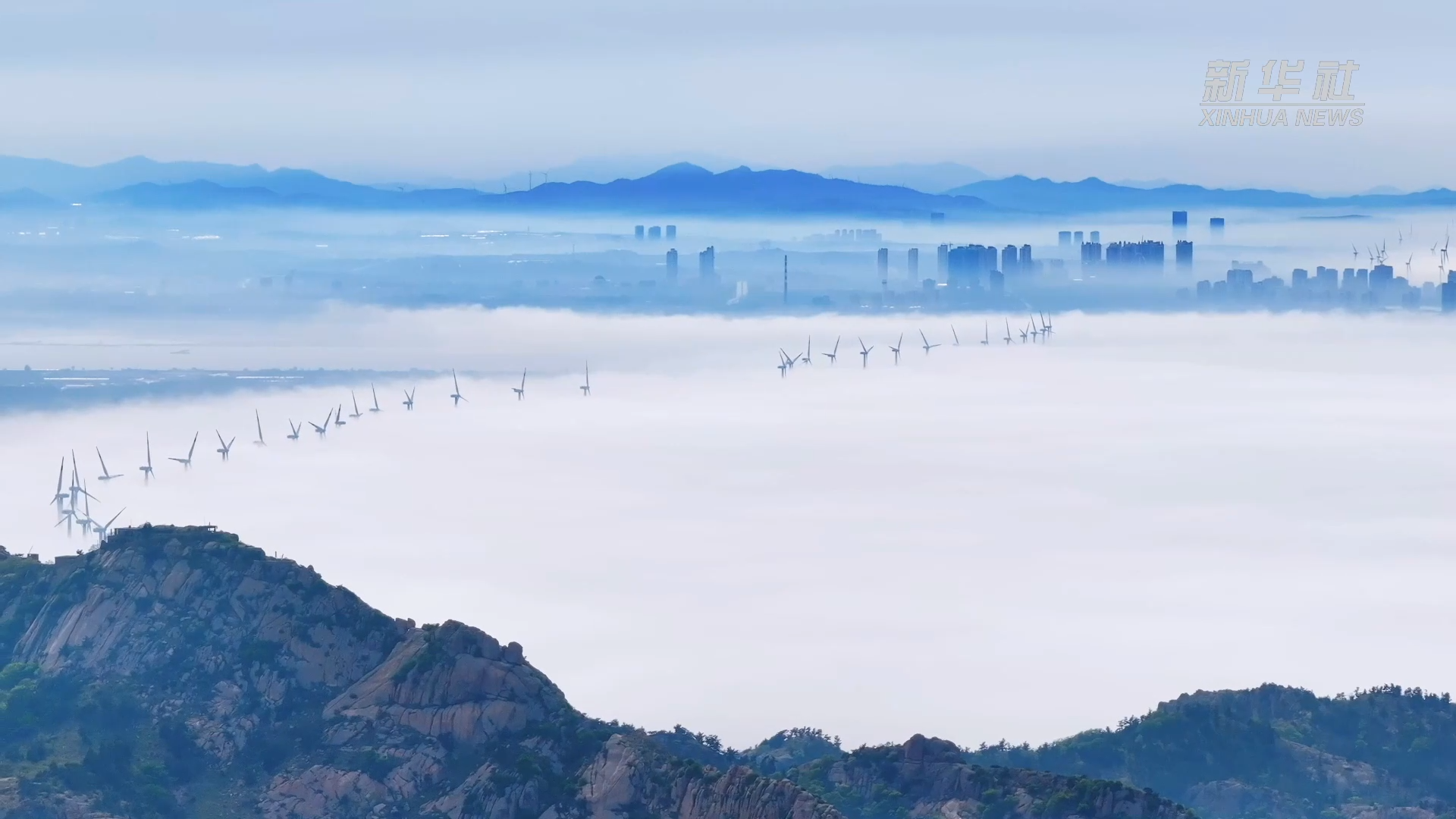 近日,山东威海荣成市海驴岛附近海域出现了壮观的平流海雾景观。雾气缭绕下的海岸线宛若人间仙境,成群的黑尾鸥在雾中翱翔,尽显自然生态之美。