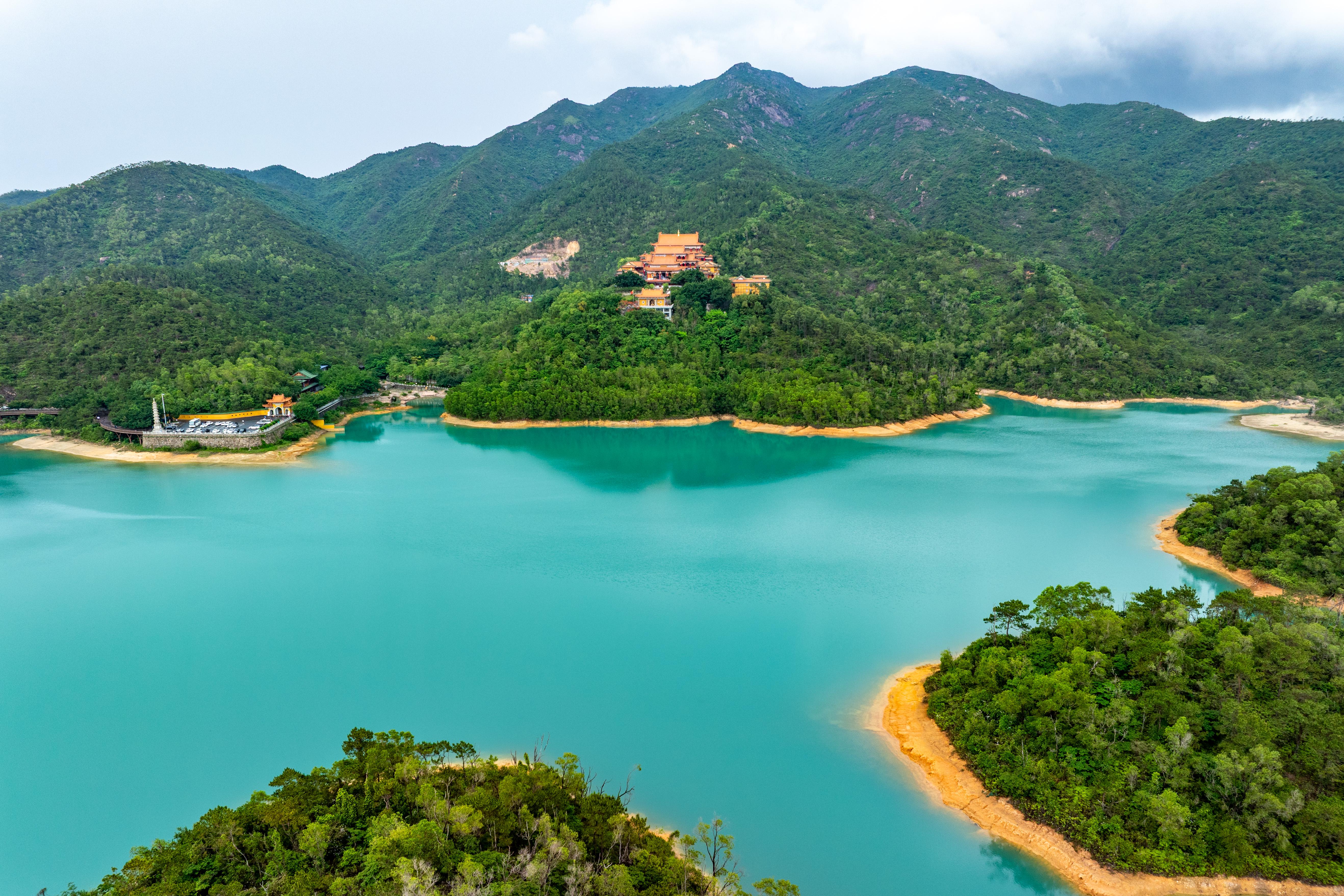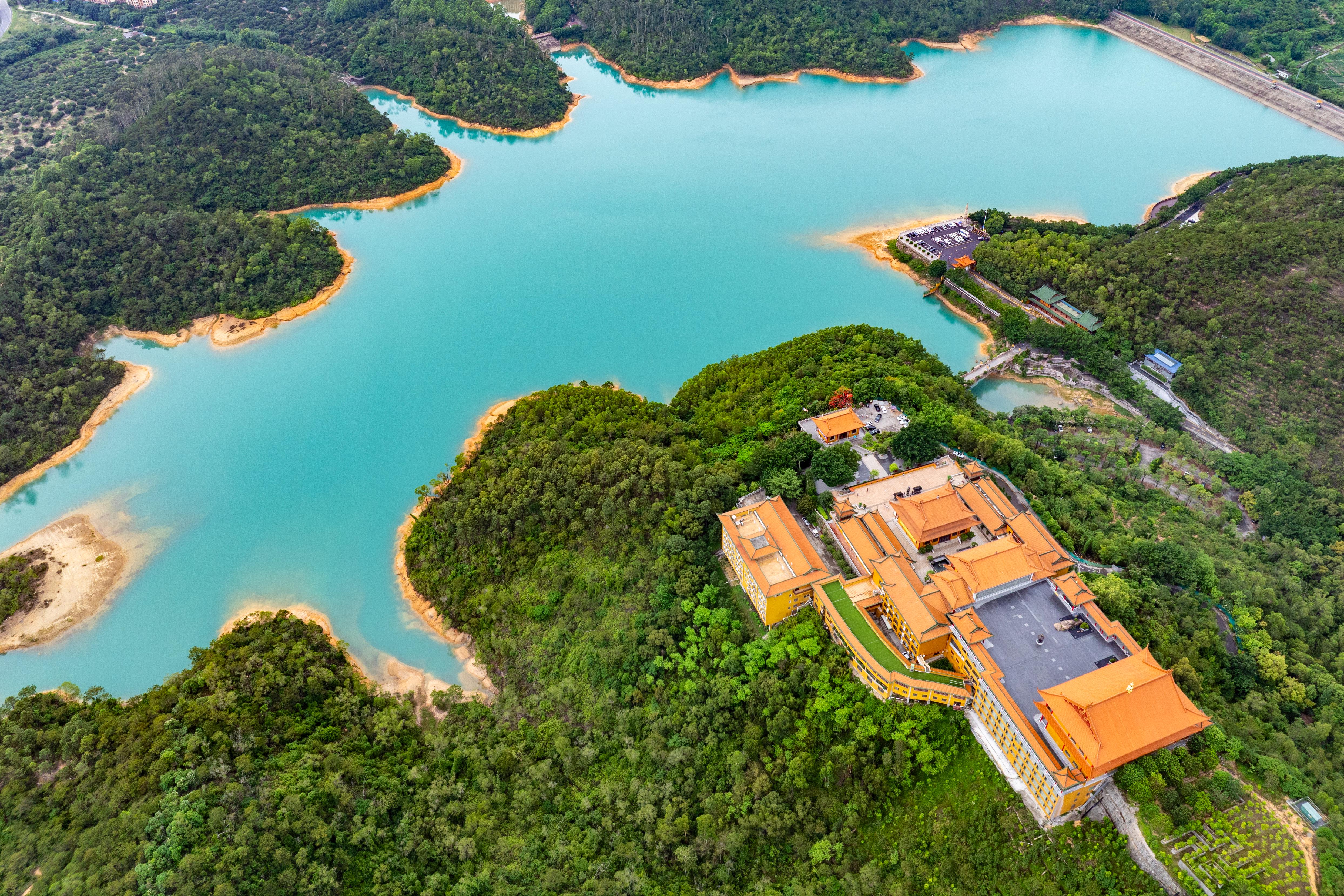 2025年5月19日,位于广东省珠海市斗门区莲洲镇东湾村黄杨山南麓的金台寺与周边绿水、青山互相映衬,风景秀丽如画。金台寺是一座历史悠久的佛教寺庙,兼具宗教文化与自然景观资源,寺庙前眺崖门海口,背靠黄杨山,左有青龙山,右有白虎山,前方是碧波荡漾的王保水库,形成“三山一水”的绝佳风水格局,成为珠海的热门游览胜地。