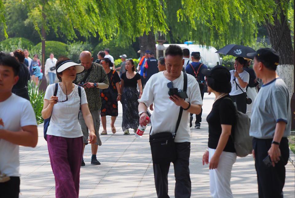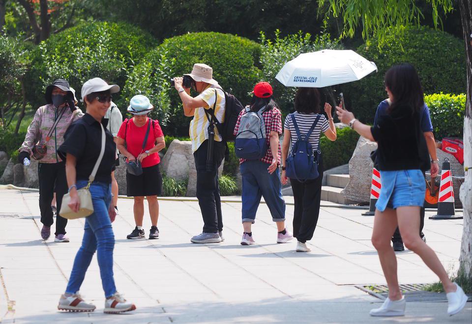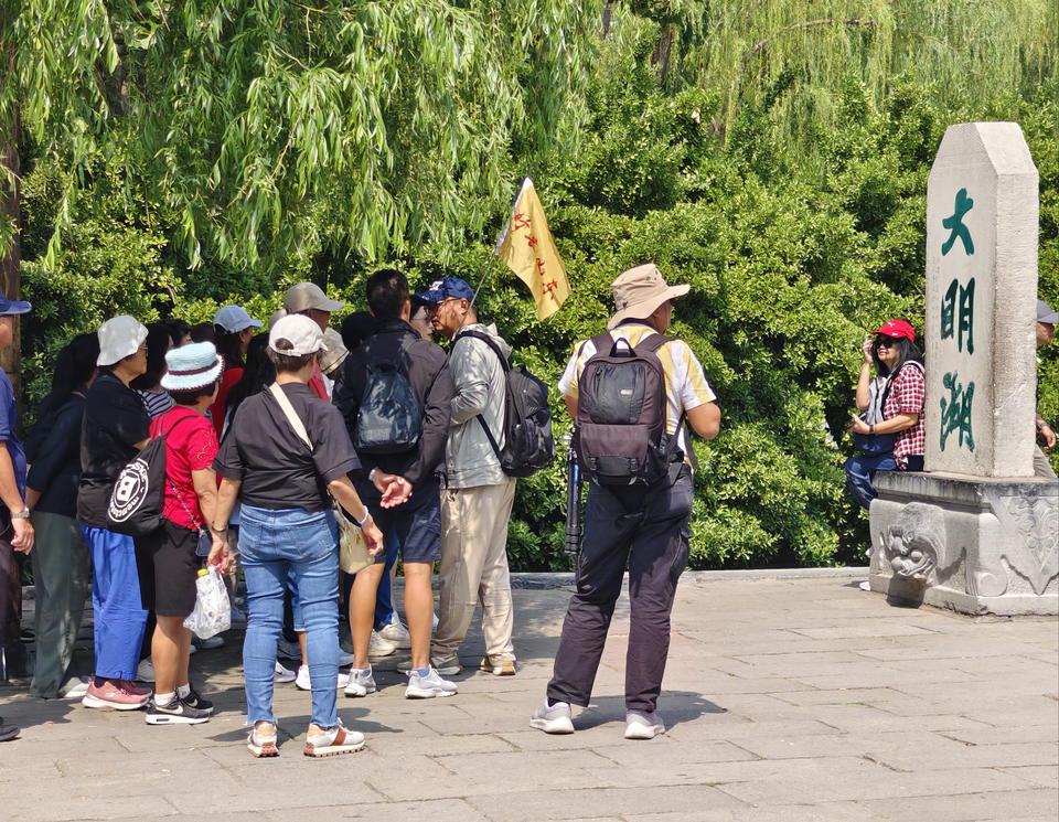 济南已到盛夏,气温达到35℃以上。但大明湖景区依旧游客如云,外地团队络绎不绝。