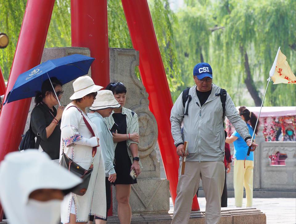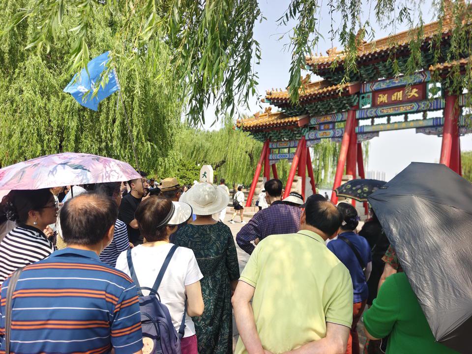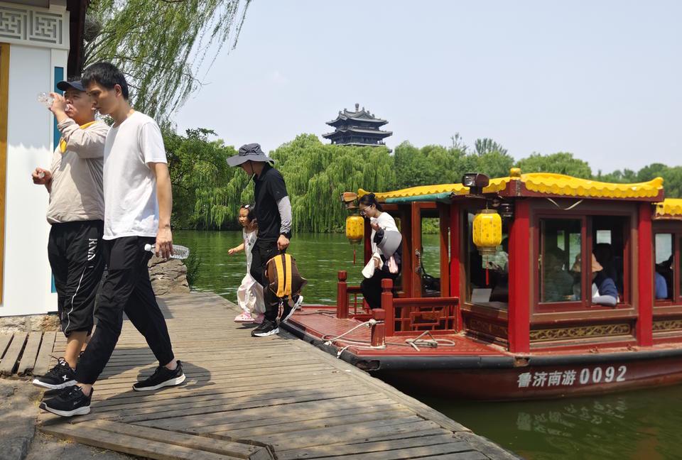 5月21日,济南大明湖景区,大批外地旅游团体纷至沓来。游客们被大明湖的湖光水色和岸边美景迷醉。