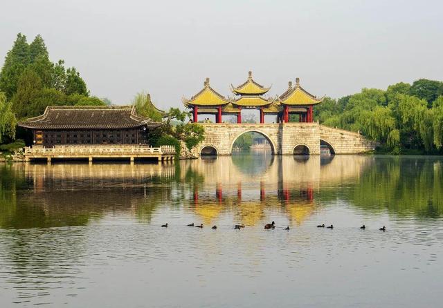 漫步瘦西湖畔,看五亭桥倒映碧波,恍若杜牧笔下“春风十里扬州路”的繁华重现。
