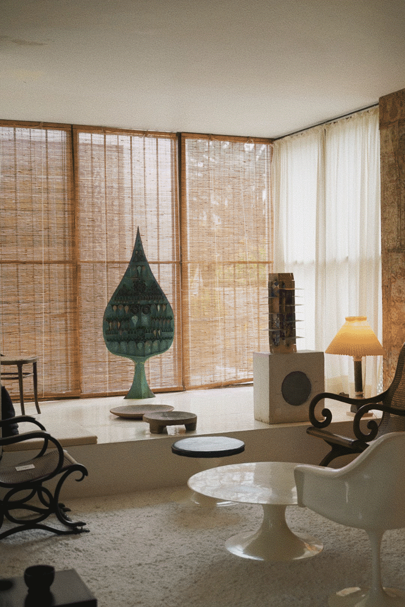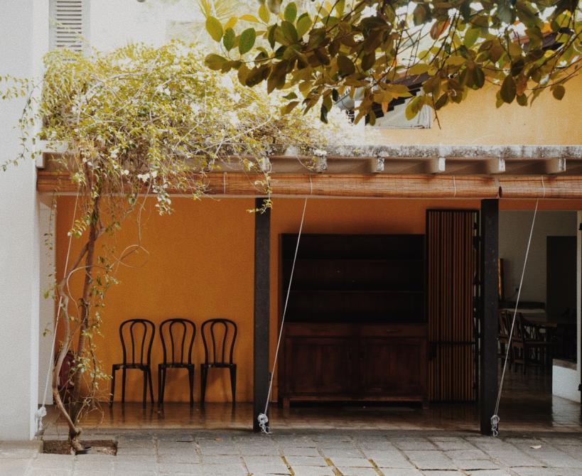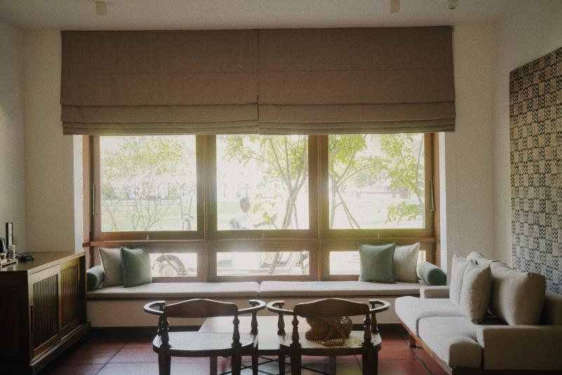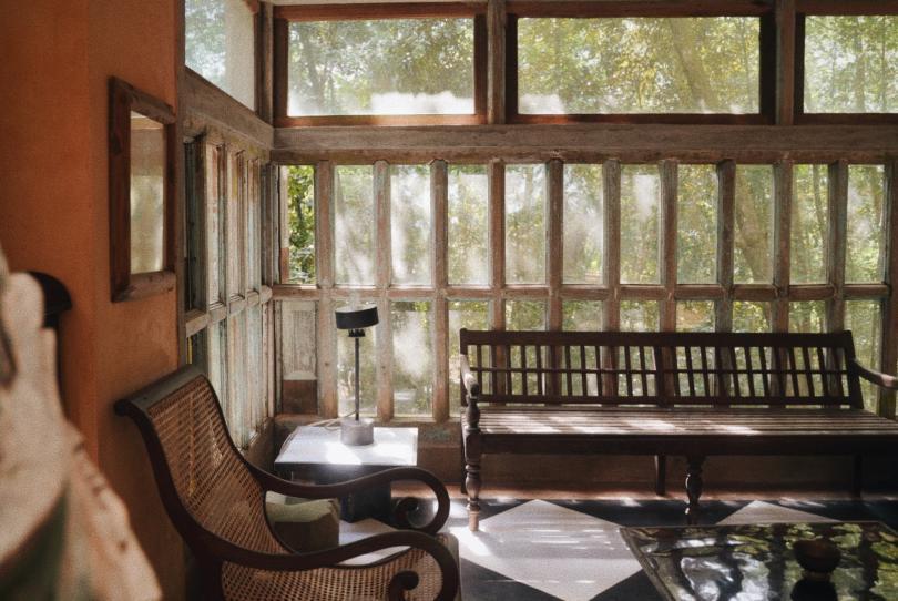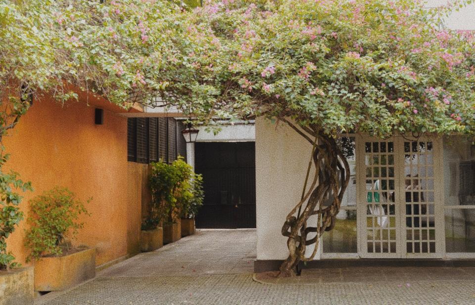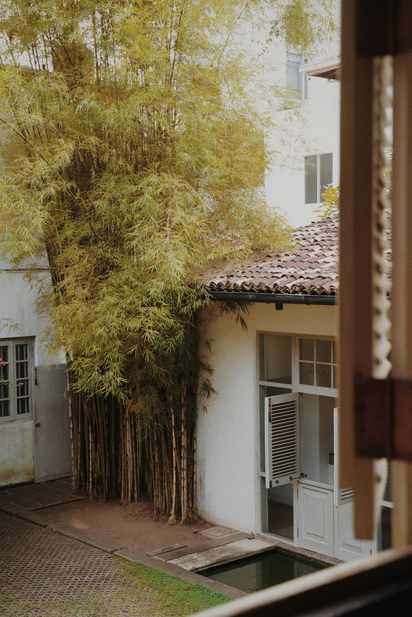 清晨的33街尚未苏醒,巴瓦自宅的白色围墙在三角梅的掩映下显得漫不经心。推门刹那,中庭的雨链正承接昨夜积雨,叮咚声里始建于1958年的建筑群,像被施了空间折叠术的魔盒:殖民风格的柱廊突然转折成僧伽罗传统庭院,混凝土楼板在转角处化作雕花木窗,为狗狗专门设置的座椅突如其来的温柔,冷峻的现代主义中热带植物毫不见外地热烈生长。接待我们的管家说:"巴瓦先生总在早餐时修改图纸,他说建筑应该像茶叶舒展般自然生长。” 旅途中常有泉水溅落在灵台的一瞬,“像茶叶舒展般自然生长”是我在斯里兰卡第一个清晨的泉水。