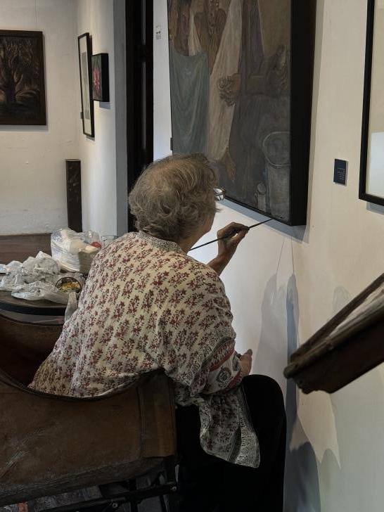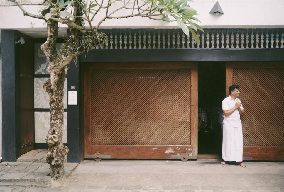 午餐选择了The Gallery café ,巴瓦先生曾经的工作室。我吮吸着冰镇的菠萝汁,坐在如今的中庭看一位年迈的当地艺术家修复画作。她旁若无人,我也绝不打扰,她专注修画,我专注看她修画,光线美得像一个神话。这是不具备通常意义的旅行者时间,却是我个人的优质时间——旅途中为一些计划外的美妙事件停留,享受那些全然陌生的人之间没有界限、自然吸引的时刻——打破界限是巴瓦毕生追求。