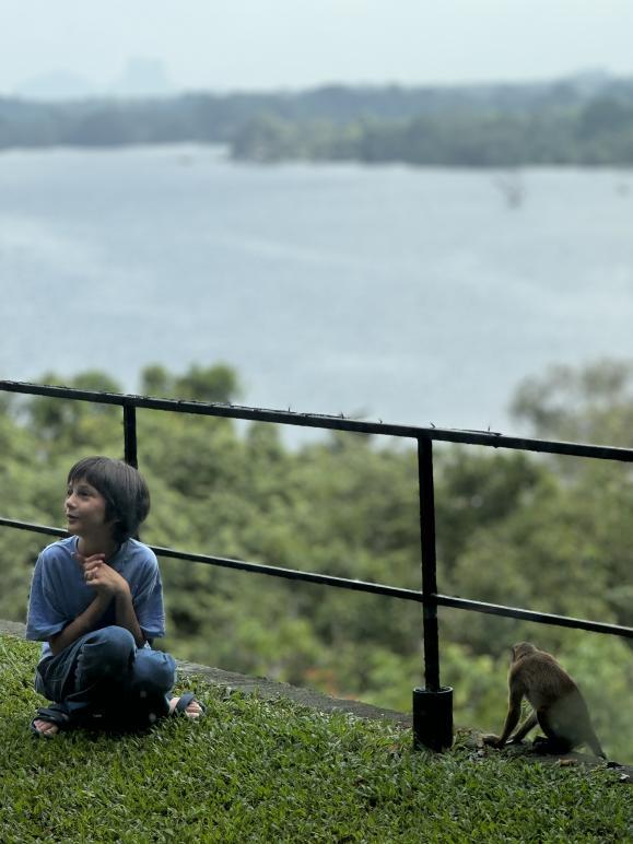 跨年的坎德拉玛遗产酒店异常难定。巴瓦当年为了让建筑从岩壁中“生长”出来,乘直升机在上空盘旋监工的偏执,值得我也偏执一次。之前在研究地图时已经对前往坎德拉玛的路况有了心理准备,实际开下来比想象中只有过之而无不及。看不到尽头的颠簸疾驰,直到远处的地平线出现了沿着岩壁“生长”的建筑群——坎德拉玛, 匍匐在丹布拉岩层中的巨兽,与公元前1世纪的石窟寺形成了超现实的时空对话。