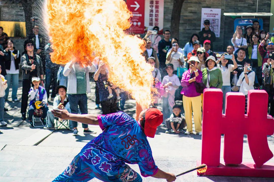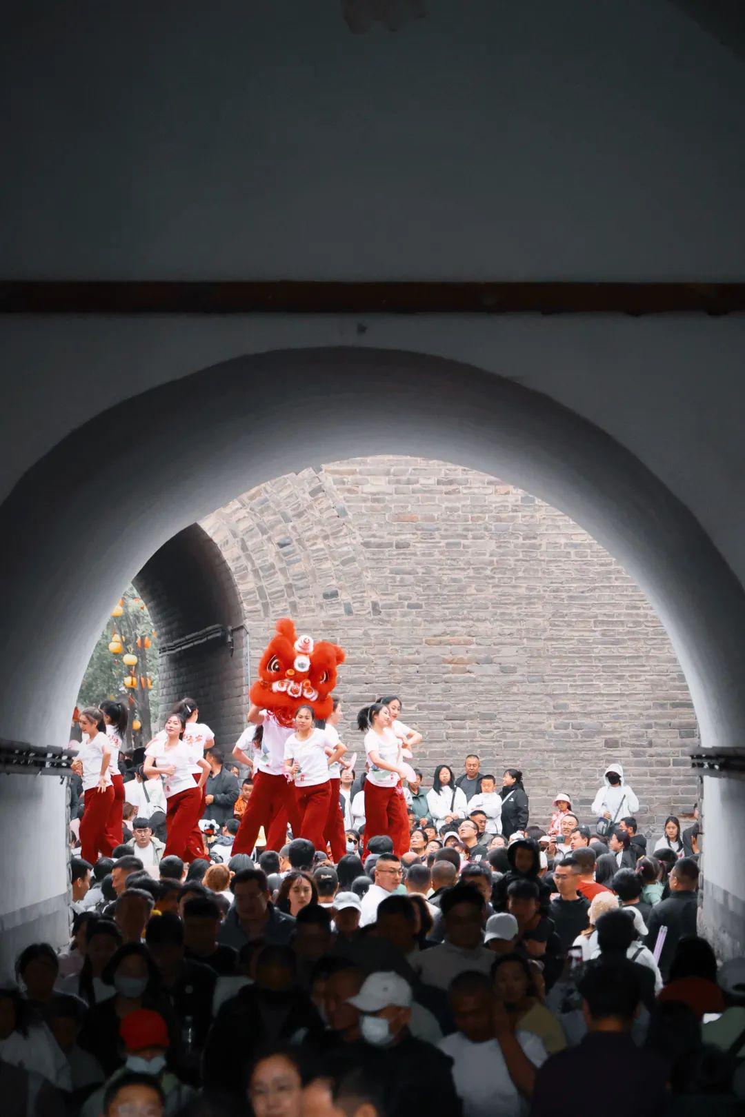 南城门下,金瞳闪烁的狮子腾挪跳跃,舞出夏日的蓬勃生机;民俗小戏、二人台、多种街区表演将带你穿越时空,沉浸式感受传统文化的独特震撼。南北大街,安徽花鼓灯与寿阳高空竹马交相辉映,非遗民俗化作流动的画卷,一定让你目不暇接。