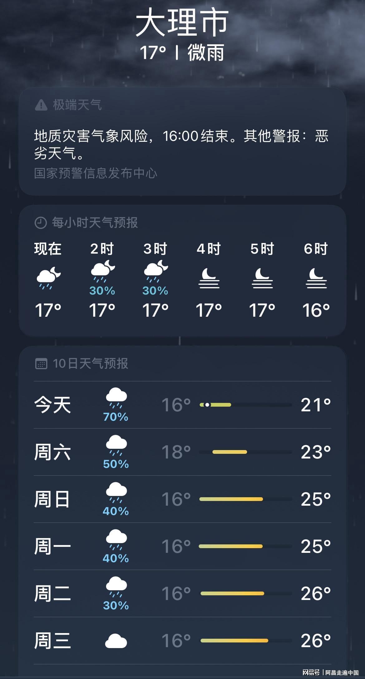 作为一名游客来大理旅居半年啦,最近五月下旬赶上端午节,雨季来临,从5月22日开始下雨到如今端午节,整整下了一个星期,日日夜夜没停过,全是中雨到大雨,很多旅居大理的游客都说从没见过连续下一个星期不停的大雨,真是让人开眼界了,笔者云南待五年,对云南雨季比较了解,六七八月基本天天雨季,但是像这次大理下一个星期24小时不停的雨还是第一次见。