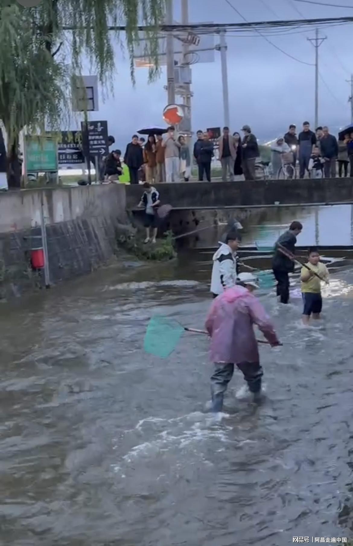 很多人抓到的鱼不小,特别是小孩子很欢乐,抓鱼不是重点,重点是体验抓鱼规程体验感,寻找童年的快乐,但是也有人说,主要是看热闹多,真正准备网兜来捞鱼,一个也没捞着。