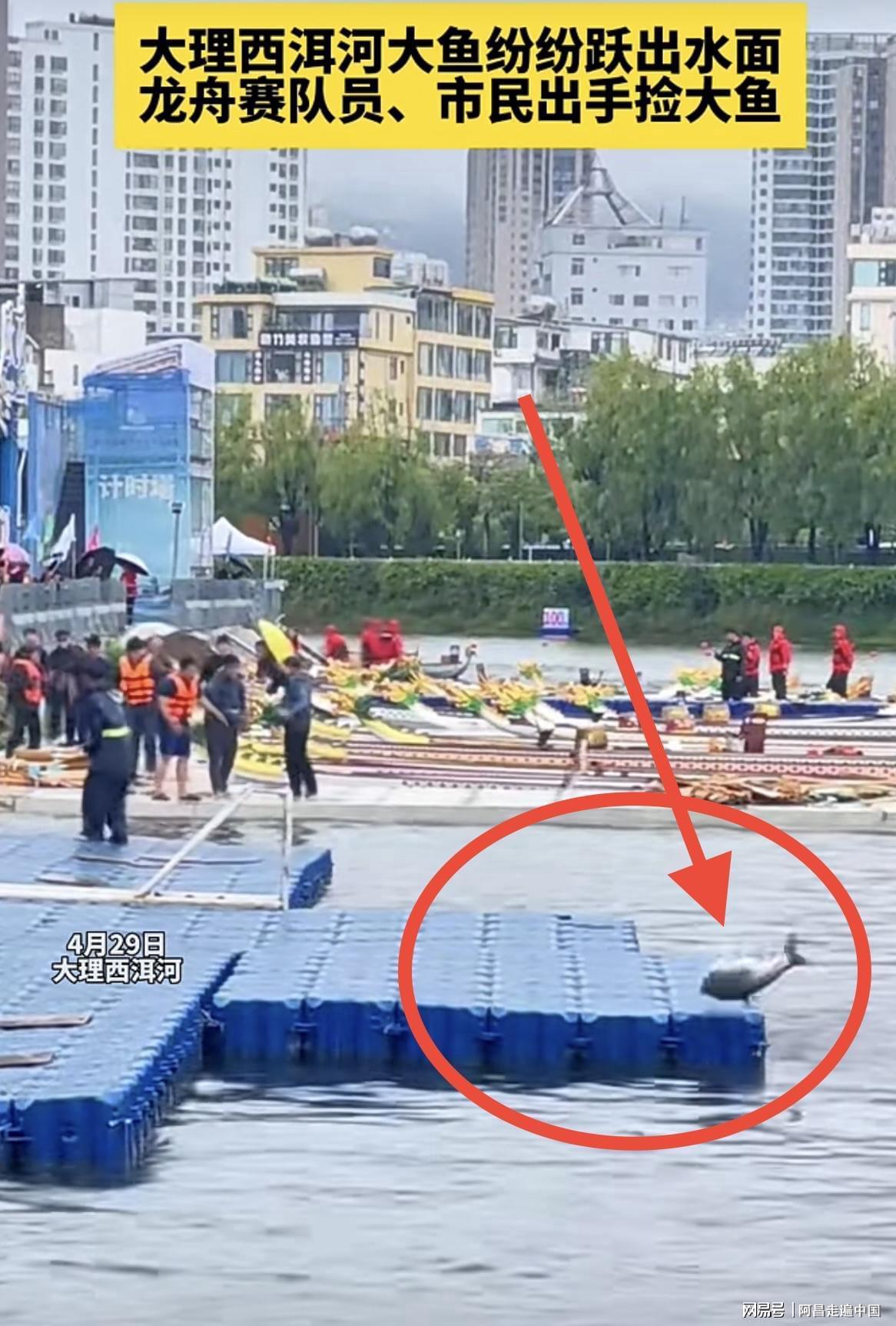 然而这几天旅居大理很多游客朋友圈、短视频晒出大理洱海水位上涨,西洱河上赛龙舟船上鱼直接跳上船,大理港多位游客晒视频鱼儿飞奔乱跳简直太欢乐啦,网友说这是好的预兆马上高考鲤鱼跳龙门。