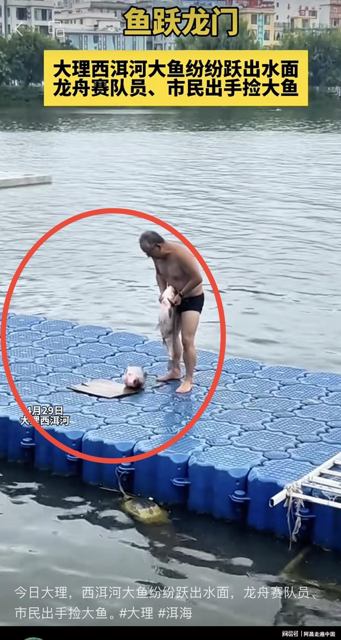 然而有多位旅居游客晒出大理龙龛生态园和白鹤溪湿地这一段小河里、还有生态廊道、很多市民、游客、小孩子在捞鱼,现场气氛一片欢乐,很多人调侃人比鱼多,有人说这些鱼都是洱海里跳出来的,洱海每一个闸口都守满了捞鱼人。