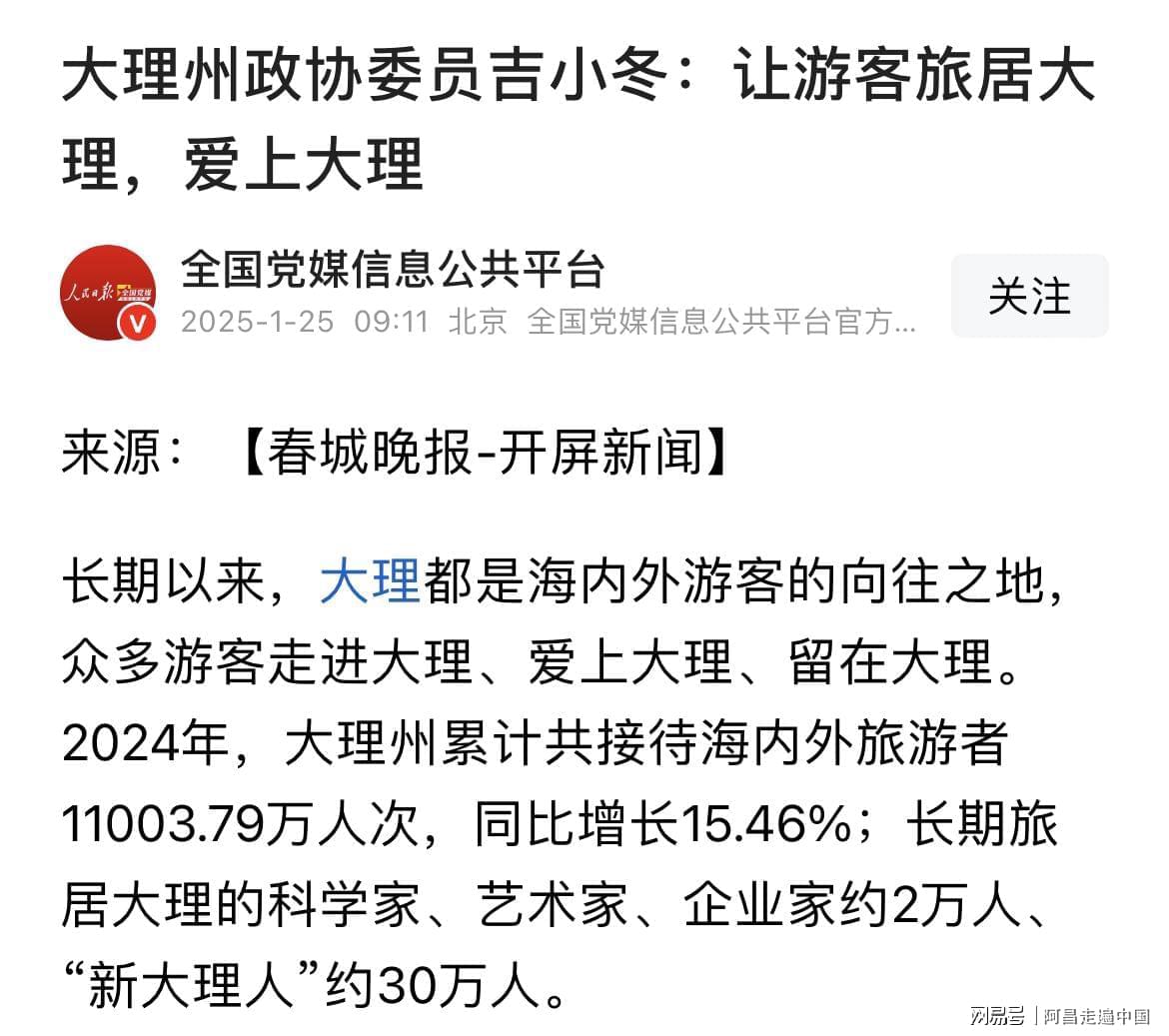 云南省要打造3000个旅居村,2024年旅居云南外地人达到400万,2025年争取达到600万人,云南旅居知名度最高地方当属于大理,2024年,大理州累计共接待海内外旅游者11003.79万人次,同比增长15.46%;长期旅居大理的科学家、艺术家、企业家约2万人、“新大理人”约30万人。