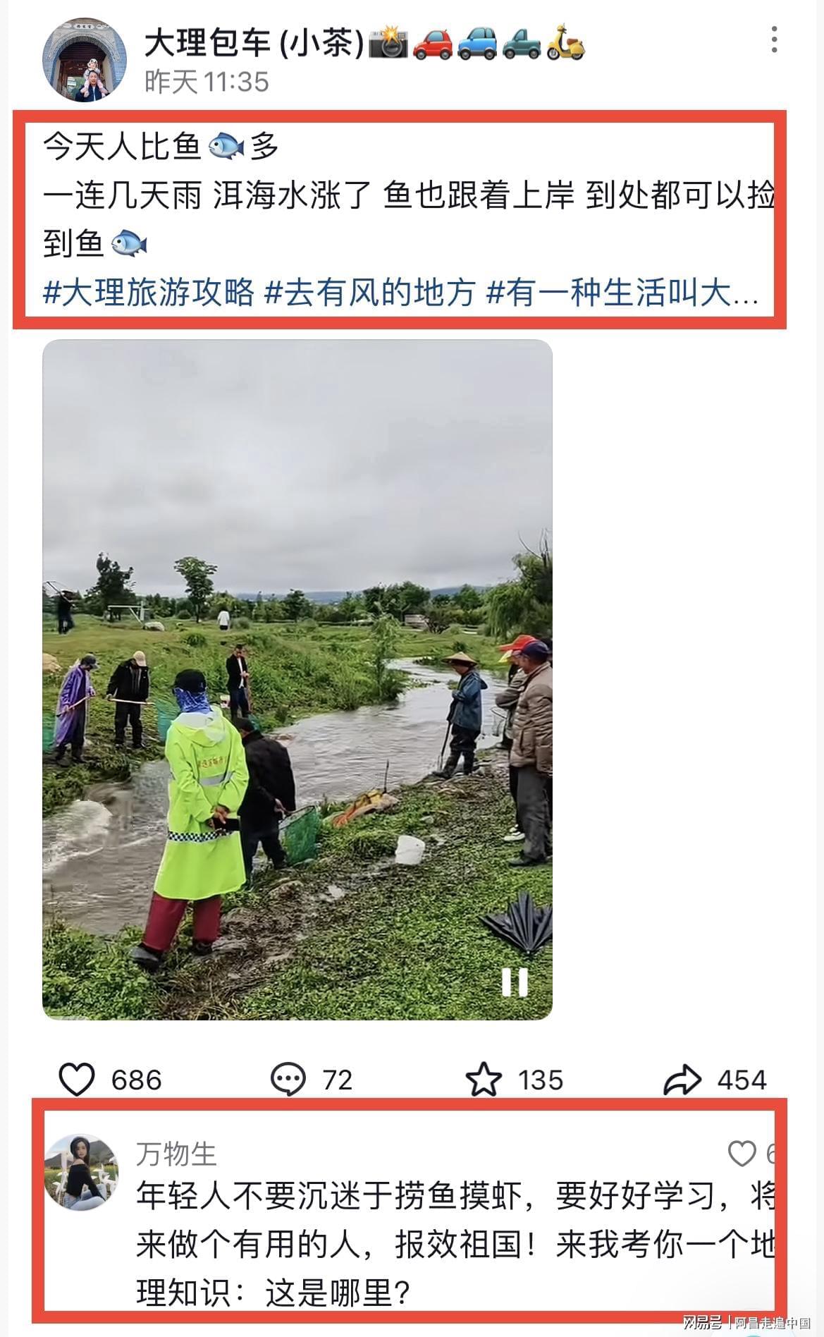 欢迎留言、讨论,关注我,每天分享不同的旅行世界。 #云南大理游客市民下河排队摸鱼#