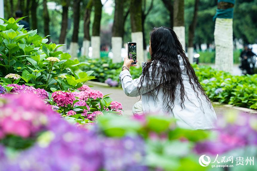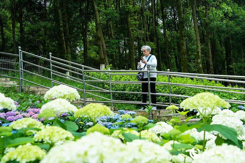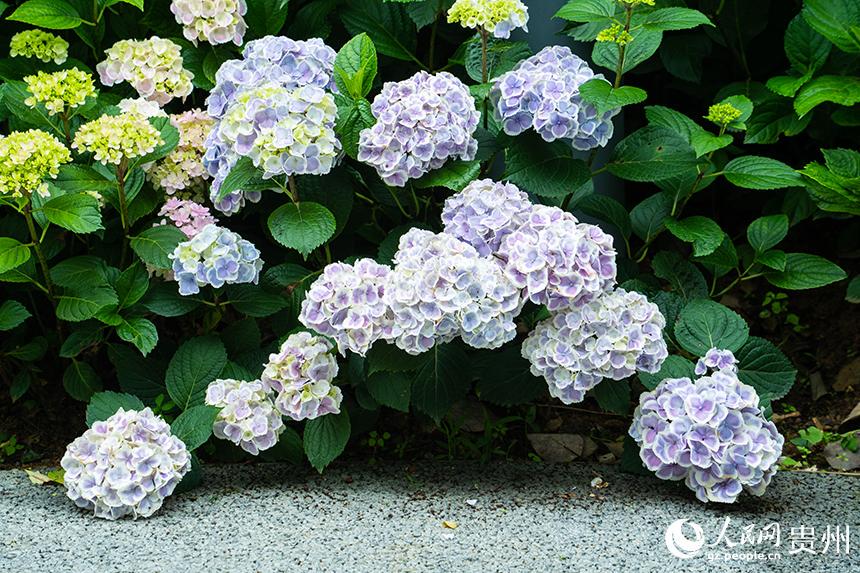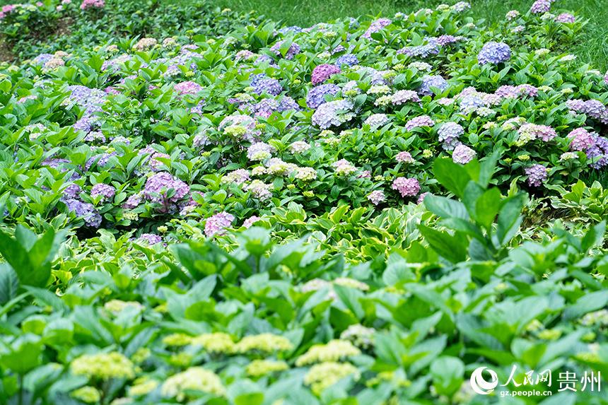 人民网贵阳5月31日电 (高华、阳茜)5月30日,位于贵州省贵阳市观山湖区兴筑路的绣球园迎来盛花期,五颜六色的绣球花吸引了不少市民前往拍照打卡。
