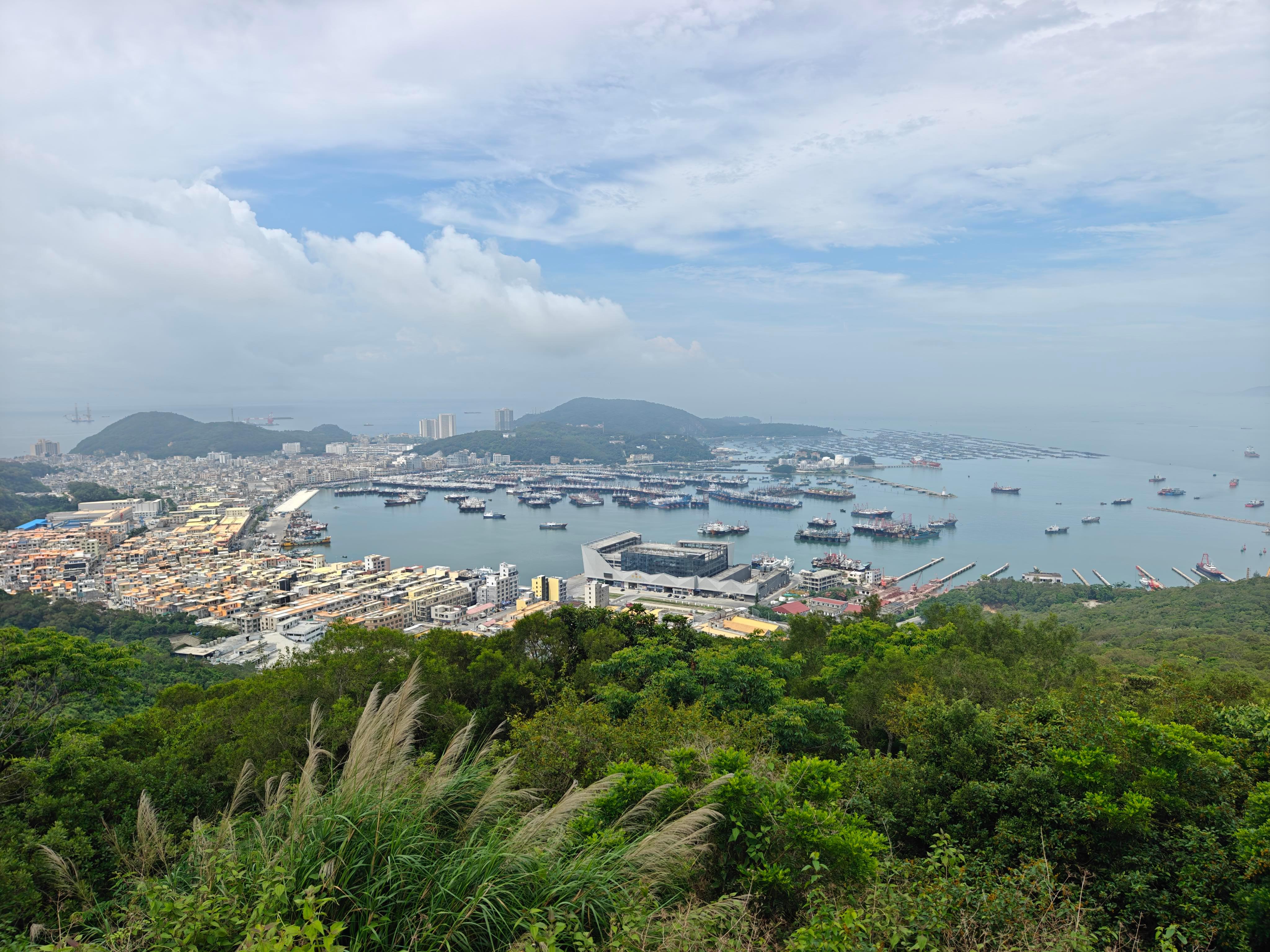 登上海陵岛内的最高点风车山,海风拂过,6座白色巨型风车缓缓旋转叶片。观景台上,俯瞰海陵岛全貌,渔港美景尽收眼底。来自广州的胡女士举起手机连拍数张:“渔船在山脚睡觉,风车在山顶值班,这画面太‘海陵’了!”