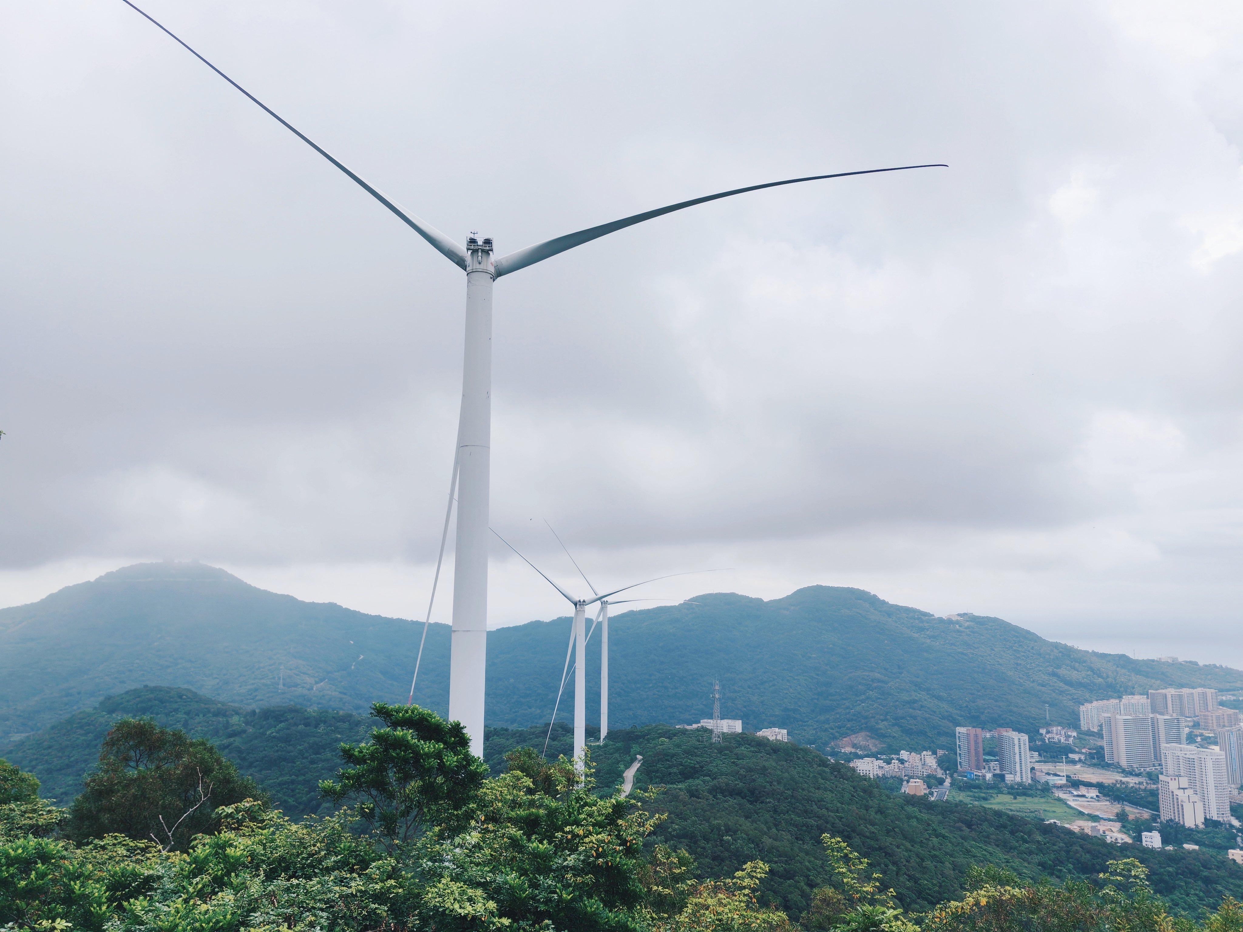 从景观台望去,风车山上,几台风车错落有致。人民网 宁玉瑛摄