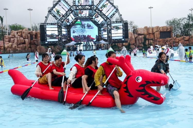 7700平方米的冲浪池,化身水上舞台:演唱会、烟花秀、打水仗、赛龙舟、抢粽子……6月1日,备受瞩目的璧山梦界水世界在玉泉湖畔正式开园,众多游客共同见证了这场融合“水战”激情、亲子互动与璀璨烟花的夏日狂欢。