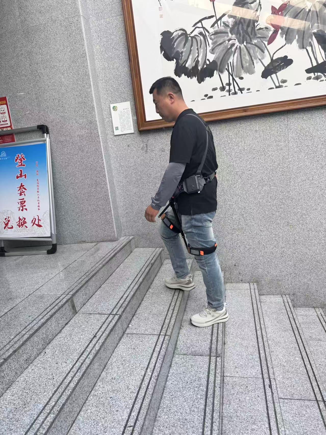 “听朋友说现在爬山可以带外挂了,抓紧过来体验一下。” 在红门游客中心的登山助力机器人体验馆,游客孙亚栋在工作人员的帮助下,穿戴上了一套S码的登山助力设备,并兴奋地爬楼梯尝试起来。“真的管用,一抬腿就有一股力量拉起来,攀登台阶像有人拎着腰。”