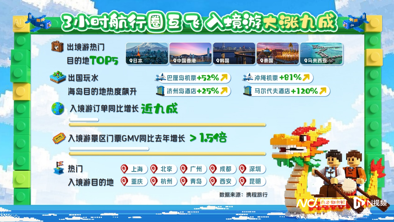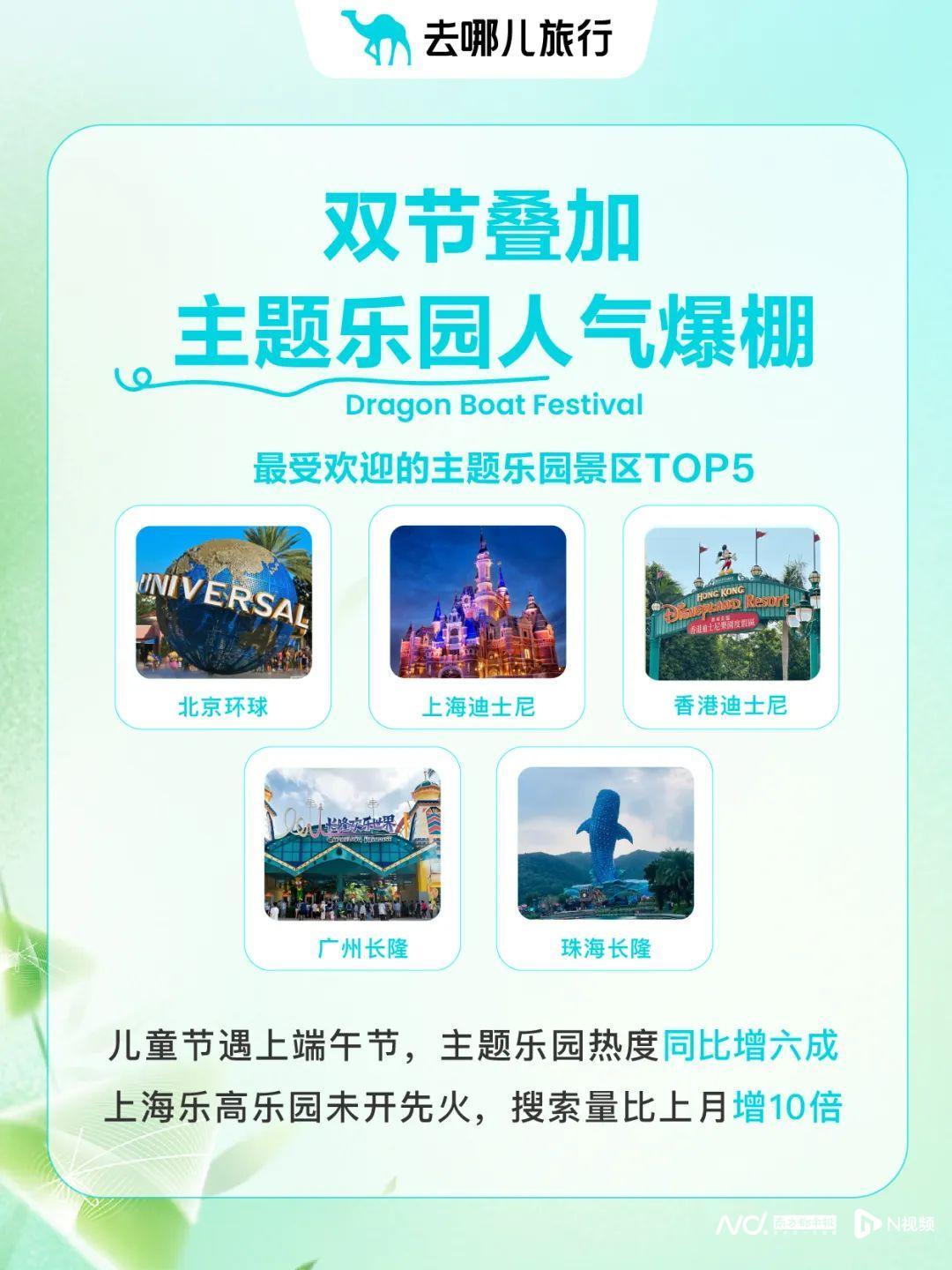 由于今年端午遇上 “六一” 儿童节,“遛娃经济” 火热,亲子游成为端午旅游市场的重要组成部分。据去哪儿数据显示,主题乐园景区在这个端午小长假最受欢迎,预订量同比增六成,上海乐高乐园未开先火,搜索量环比上月增 10 倍。“多孩” 出行需求激增,亲子房预订量同比增长超五成。从数据来看,同程旅行平台上的亲子跟团产品预订热度同比增长 80%,旗下艺龙酒店科技平台上的亲子房预订热度同比提升超过 200%,部分热门 IP 亲子房在端午假期前就已达到满房告罄的状态。