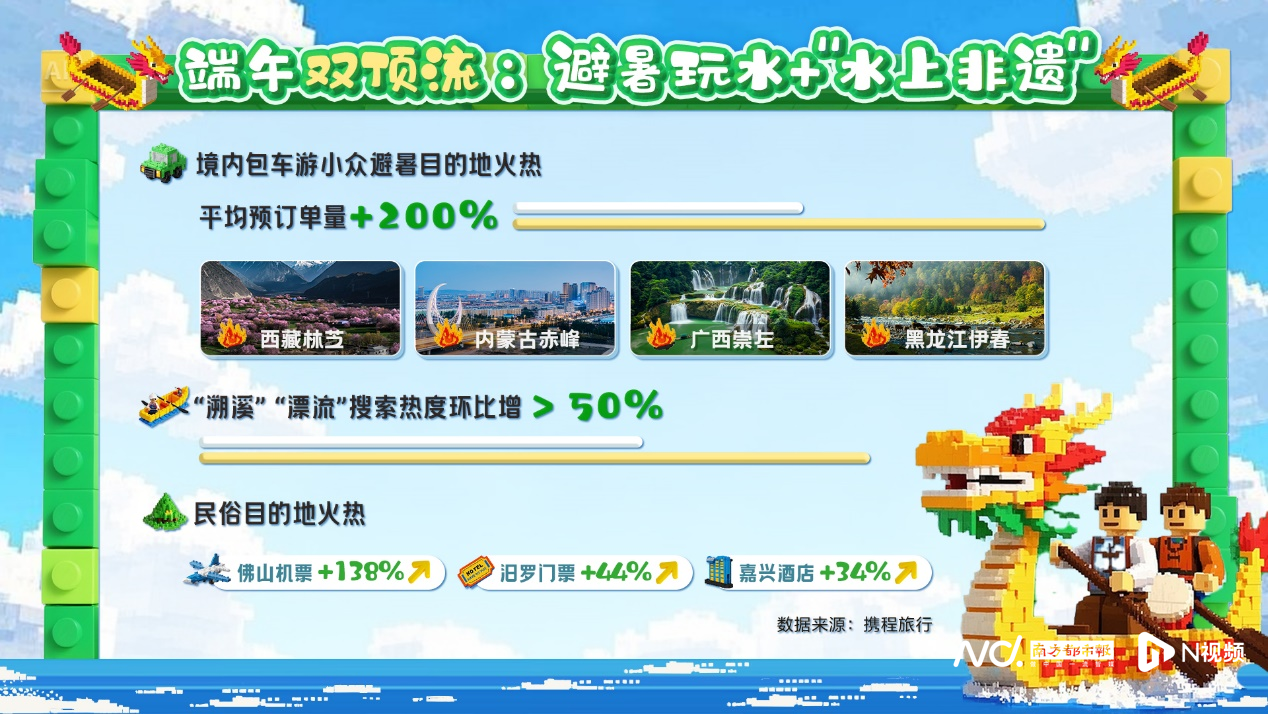 今年端午期间,民俗体验游热度显著攀升,各地丰富多彩的民俗活动吸引了众多游客。据去哪儿平台显示,湖南岳阳、江苏无锡、广东佛山等 “非主流” 目的地凭借独具特色的端午民俗活动,成功出圈,端午酒店预订量同比增长超四成。在岳阳,人们可以观看龙舟竞渡的壮丽景象,感受千年文化的传承与魅力;无锡的端午活动同样精彩纷呈,丰富多样的民俗体验让游客流连忘返;而广东佛山,据携程显示,凭借 “龙超” 等龙舟活动的火爆出圈,吸引大量游客前来,当地机票订单同比去年大涨 138%,酒店同比增长 51%。