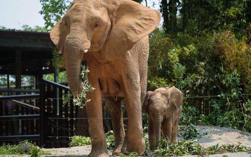 端午假期期间,上海野生动物园华东地区诞生的首胎非洲象宝宝正式和游客见面。上野供图