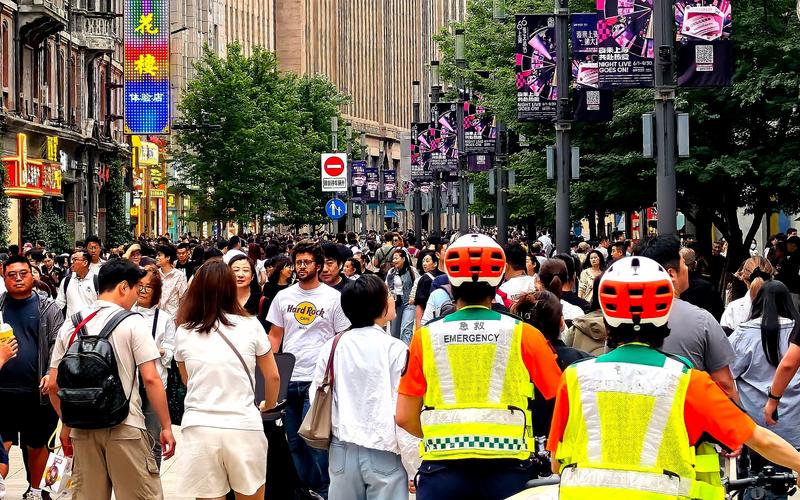 端午假日期间,南京路步行街迎来大客流。新京报贝壳财经记者 俞金旻 摄