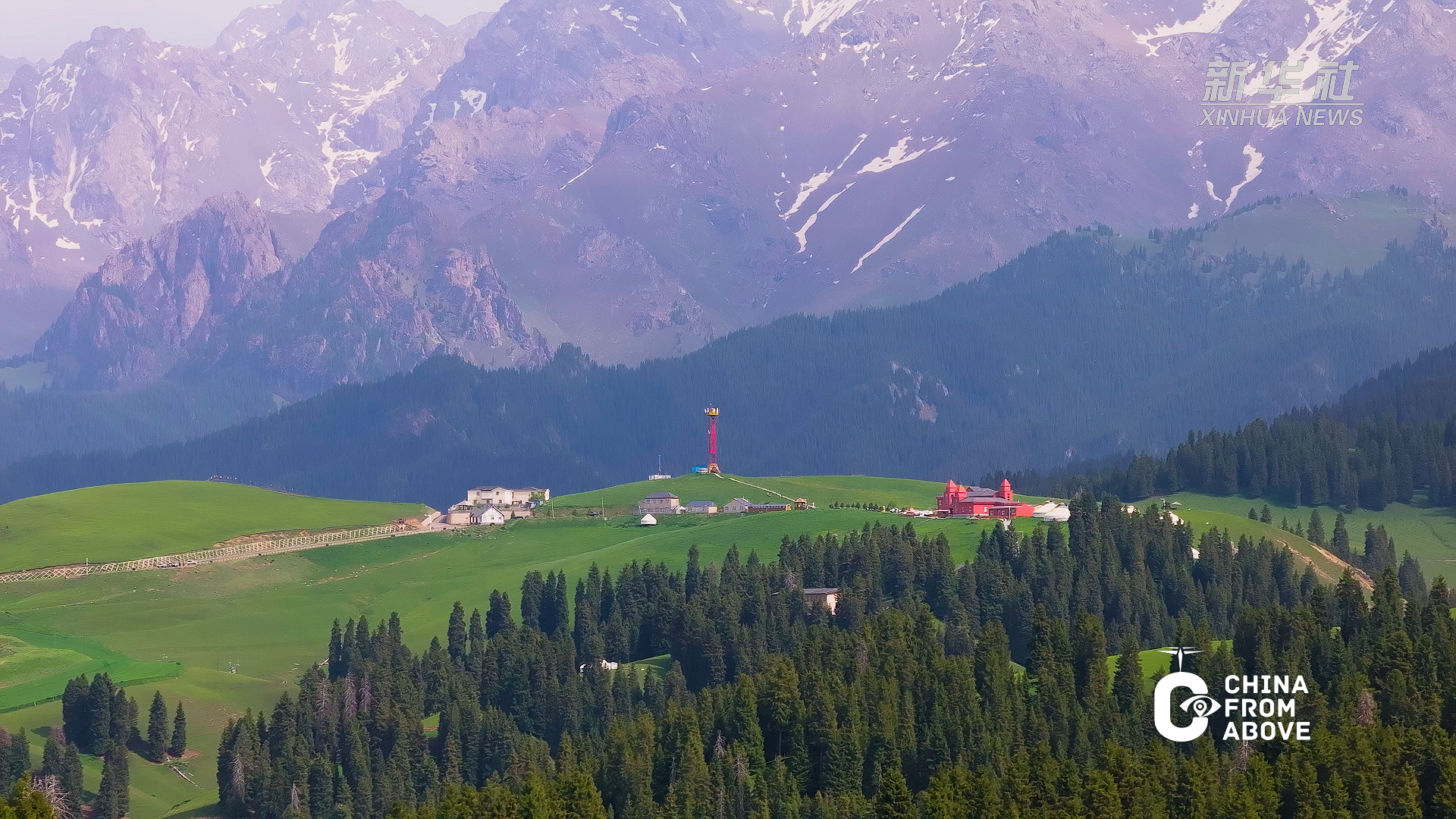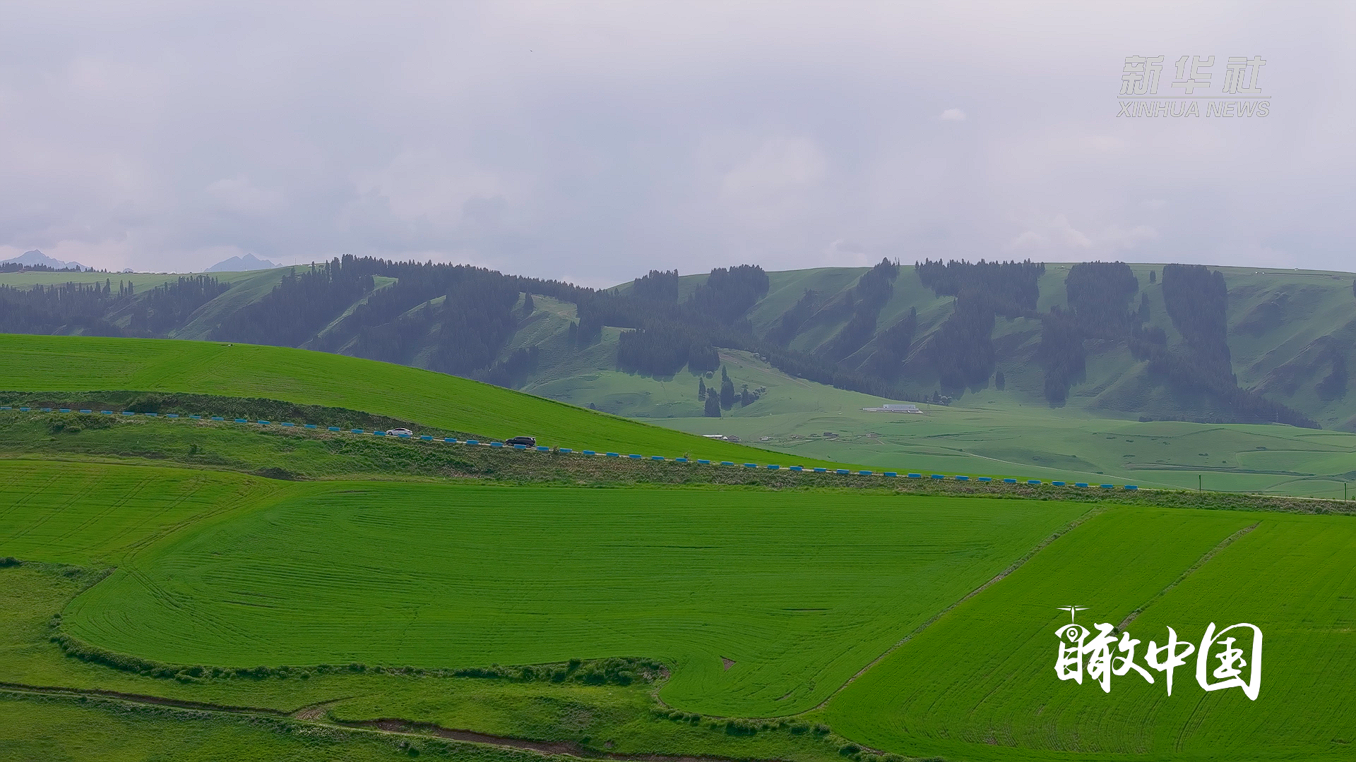 初夏,新疆昌吉州奇台县的江布拉克景区迎来了一年中最美的时节,万亩旱田披上翠绿新衣,麦浪随风轻舞,与远处皑皑雪峰遥相呼应,层层叠叠的峰峦披着深浅不一的绿衣,苍翠的松林似墨染的绸缎,覆盖在山脊之上,宛如水墨画卷晕染开的朦胧意境,吸引八方游客领略自然之美。