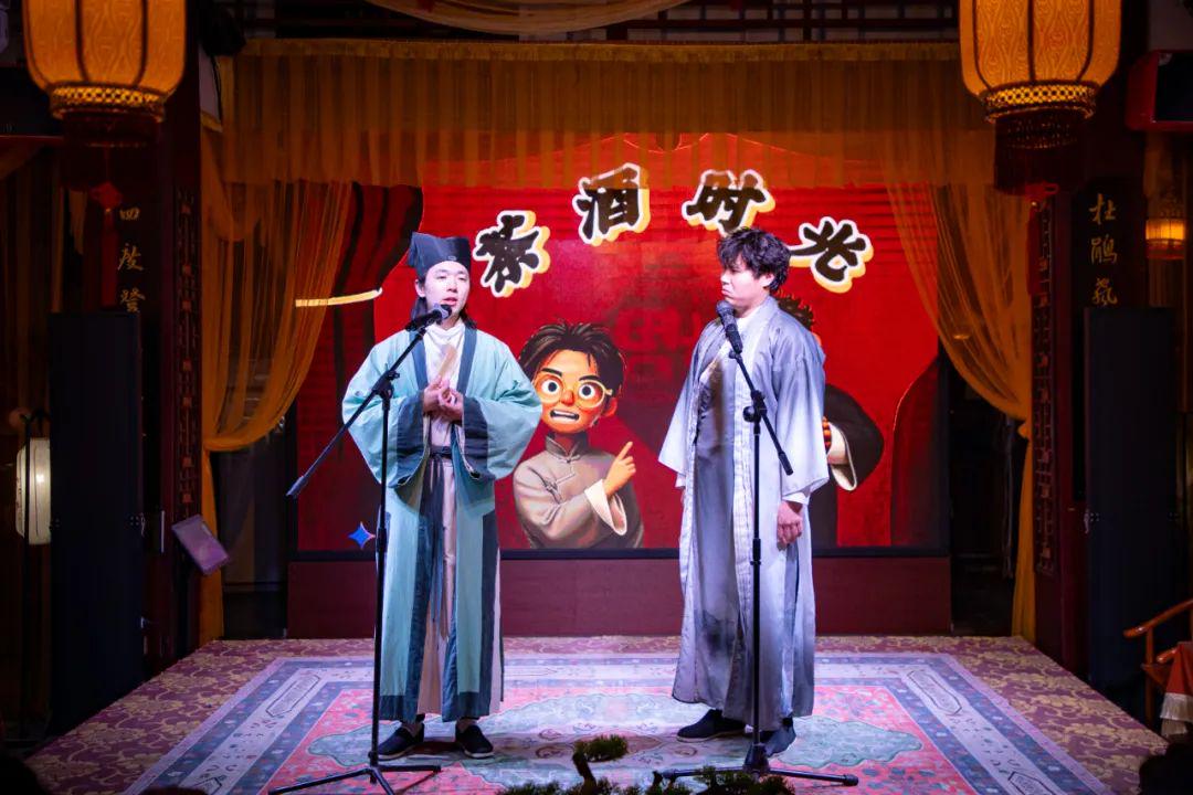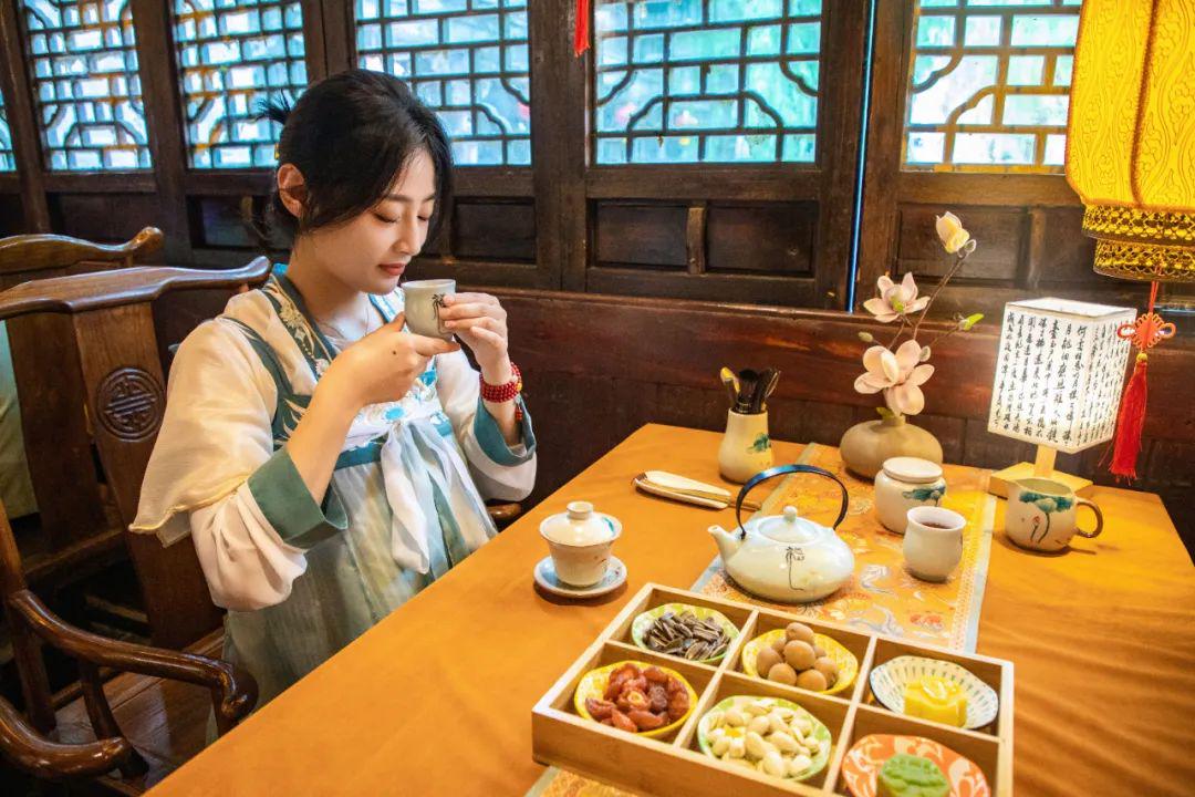 寻一处茶楼,听一场晚会。茶香袅袅,歌声绕梁,琵琶、古筝、二胡的音符在空气中纠缠,舞者翩翩,长袖翻飞间,似有唐宋遗韵流淌。茶行里的夜晚,是古韵与现代的交融,是诗意与烟火的共舞。