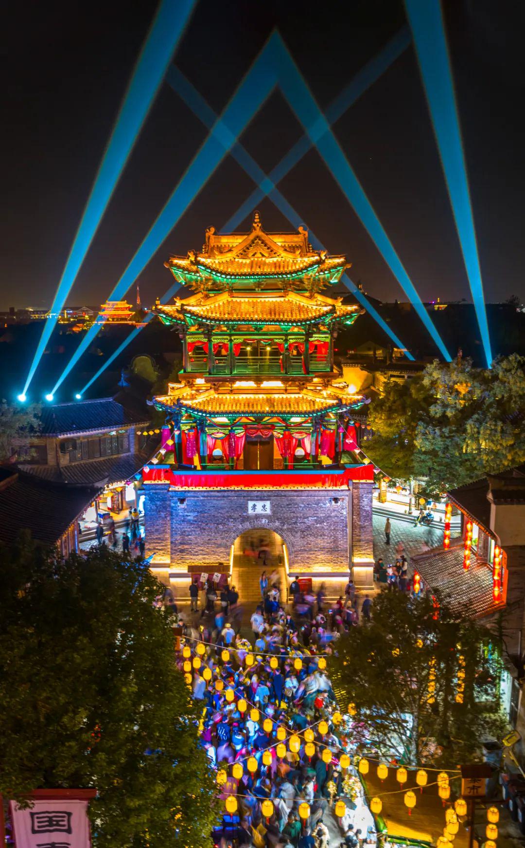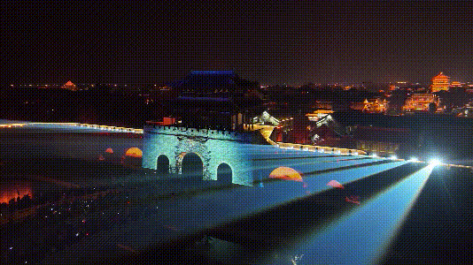 古城的灯光秀,是一场光与影的魔法。市楼灯光秀堪称夜间的璀璨明珠,音乐奏响时,无数光线在夜空中交织变幻,如同一场梦幻的光影交响乐。