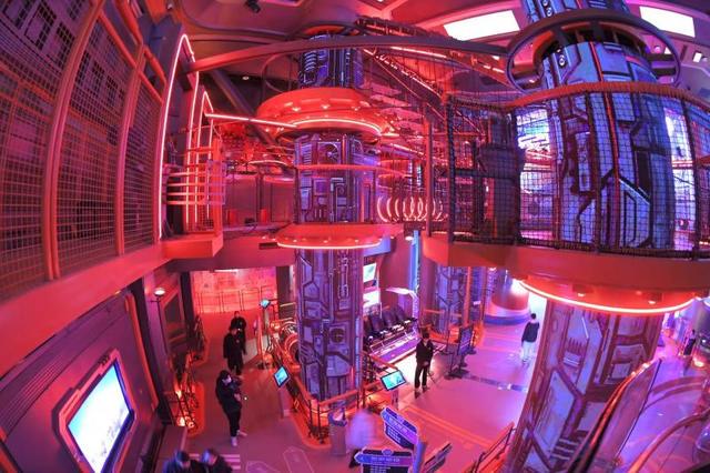 在石景山区首钢园的一高炉内,乘坐“齐天号”星舰漫游太空,在“西游降魔·起源之战”的VRPVE对战中感受中国神话故事的奇妙幻境,还体验so battle新产品线带来的VR电子竞技游戏……与普通的游乐园完全不同,你在三层咖啡馆有机会触摸到百年前的炉渣,可以真真切切地感受到重工业时代的遗存,游客在科幻与现实的时空交错中得到一种神奇体验。