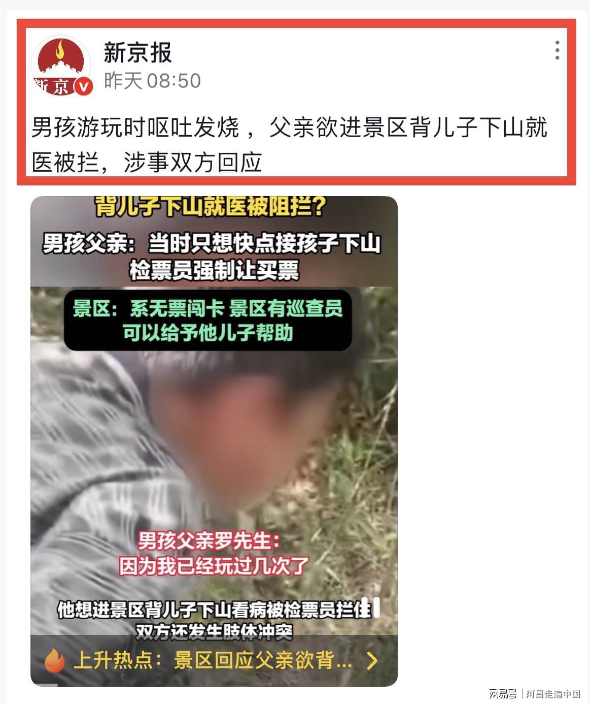 最终男子拿了好心人门票,进山背孩子,景区说也提供人力帮助和藿香正气水,一起把孩子护送下山,其实工作人员和孩子父亲双方都过于固执,不能认定谁对谁错,但是在站舆论大众角度来看,检票员办事固执死板,突发事件可以灵活运用,自己做不了主可以请示领导,景区缺乏人性化管理,不管这个事情景区有没有错,但是大众眼光来看,景区口碑和名声已经输了。